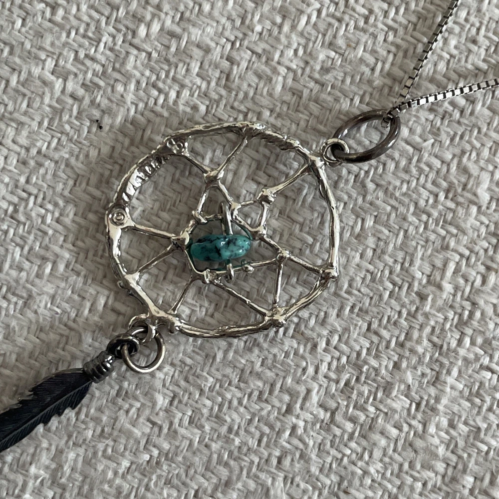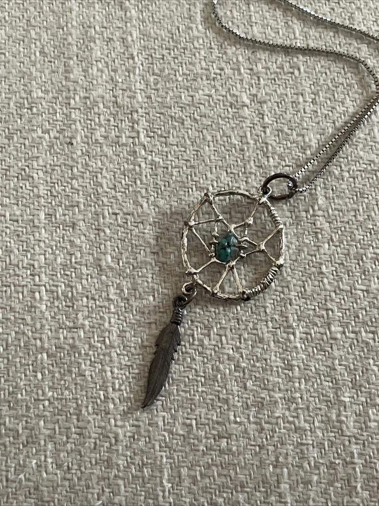 Sterling Silver Chain Dream Catcher Feather Turquoise pendant necklace Boho. Condition is Pre-owned. Shipped with USPS Ground Advantage.