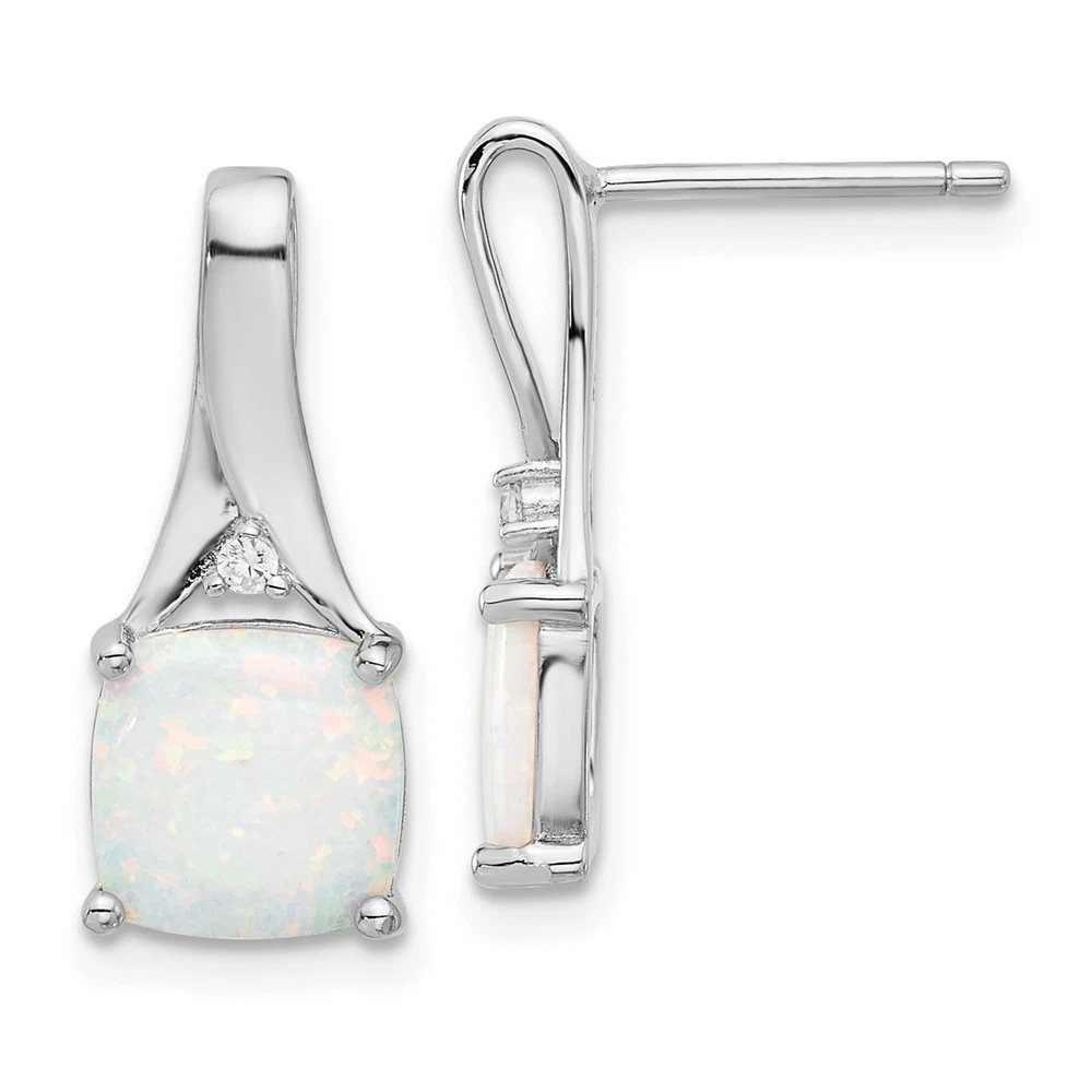 Features: Finish:Polished Stone Type_1:Opal, Lab Created Stone Type_2:Cubic Zirconia Stone Color_1:Phenomena Stone Quantity_1:2 Stone Quantity_2:2 Length of Item:19.3 mm Plating:Rhodium Stone Shape_1:Cushion Stone Size_1:8 mm Stone Size_2:1.5 mm Stone Treatment_1:Impregnation Width of Item:8.1 mm Earring Closure:Post & Push Back Earring Type:Drop & Dangle Stone Cut_1:Cabochon Plating Color:Silver Tone Stone Creation Method_1:Lab Created Earring Back Type:Friction All weights and measurements are approximate and may vary slightly from the listed information. Welcome to diamond_6720 Payments We accept all Ebay approved payment. Please sent the payment to us within 8 days after the auction has ended, or you will have unpaid case auto open by eBay. Shipping Policy We will ship all items within 1 business days of purchase during the work week (M-F) excluding holidays. If you order on Friday, your order will be shipped the following business day. Tracking will be provided when it becomes available. We will only ship to a PayPal Verified Address. Please make sure your address is current and correct. If the information does not match, your order may be canceled. Buyers are responsible for all customs, duties and taxes for your respective countries. Delivery times for International Shipping will vary. California Buyers Pay 9.0% Tax on all orders. case auto open by eBay. Return Policy & Exchange Returns or Exchange are accepted. Buyer must contact us within 30 days after the item is received. Item must be returned in unworn and resalable condition. We will only issue a refund for the purchase price, excluding any shipping fees. If we are at fault, we will provide a full refund. Buyer is responsible for all return shipping costs. BUYERS FEEDBACK If you have any concerns regarding your purchase, please contact us via eBay Message, we assure you that a satisfactory resolution will be reached. Your feedback is very important to us Do remember to give us 5 star rating(*****) if you are satisfied with our product & service .