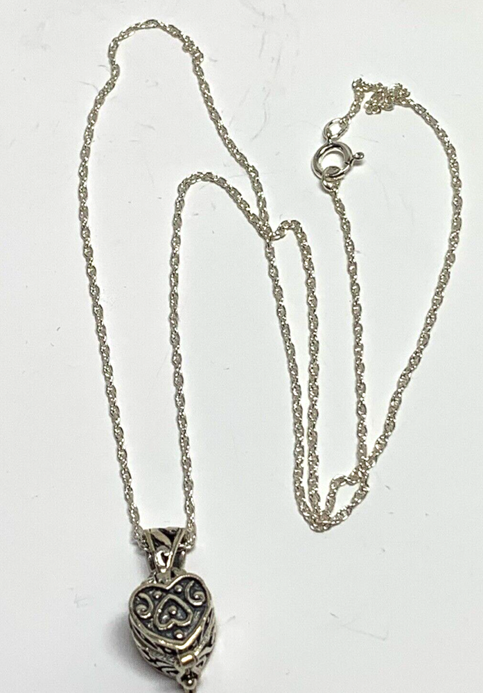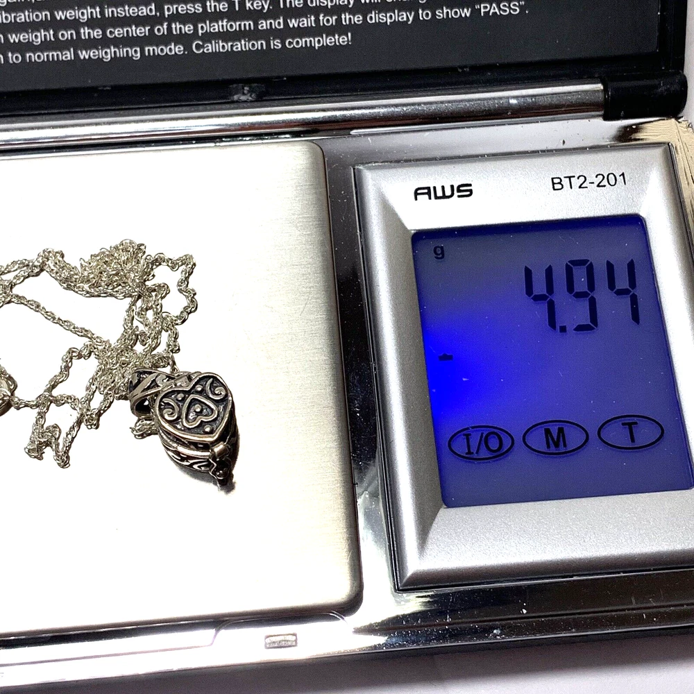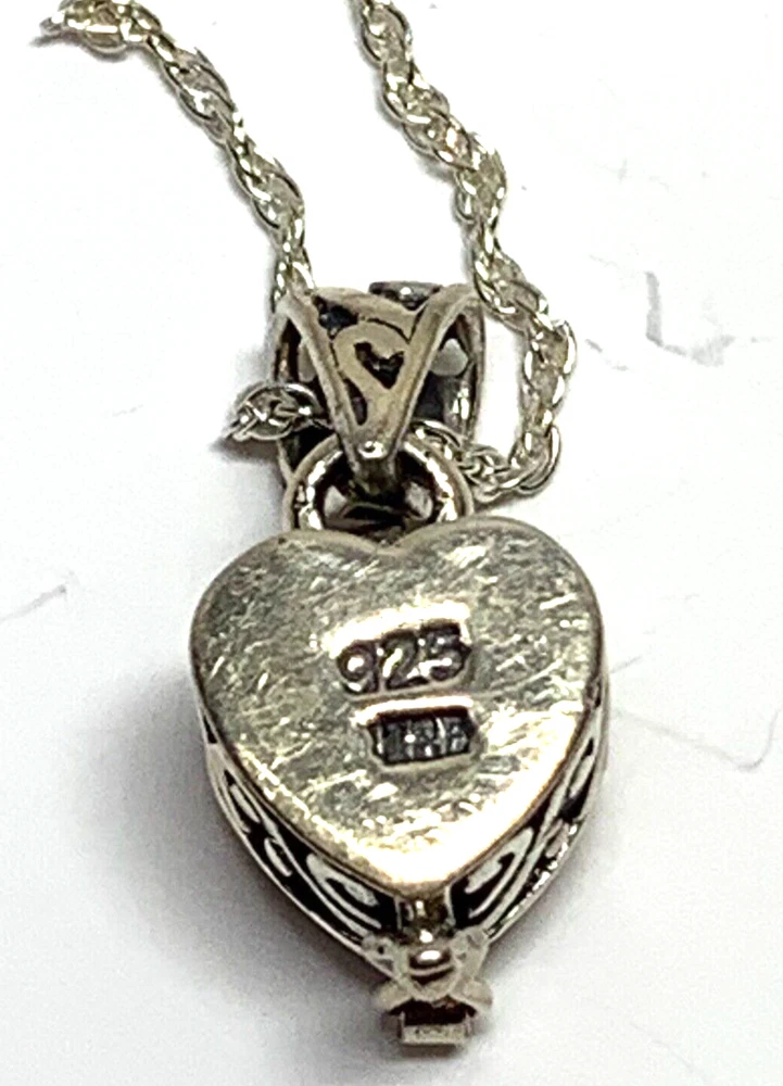 Crafted with an eye for elegance, this Sterling Silver Designer IBB Ornate Heart Locket Pendant exudes sophistication. The pendant, shaped like a heart, is an exquisite charm that seamlessly blends with any style. It is delicately balanced on an 18-inch necklace, ensuring a perfect fit that complements your ensemble. The locket's metal purity is stamped at 925, indicating a high-quality silver composition that promises durability and shine. A spring-ring closure provides a secure fastening for this beautiful piece, which is versatile enough to wear for any occasion.