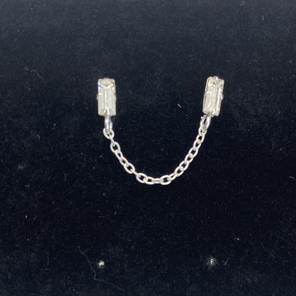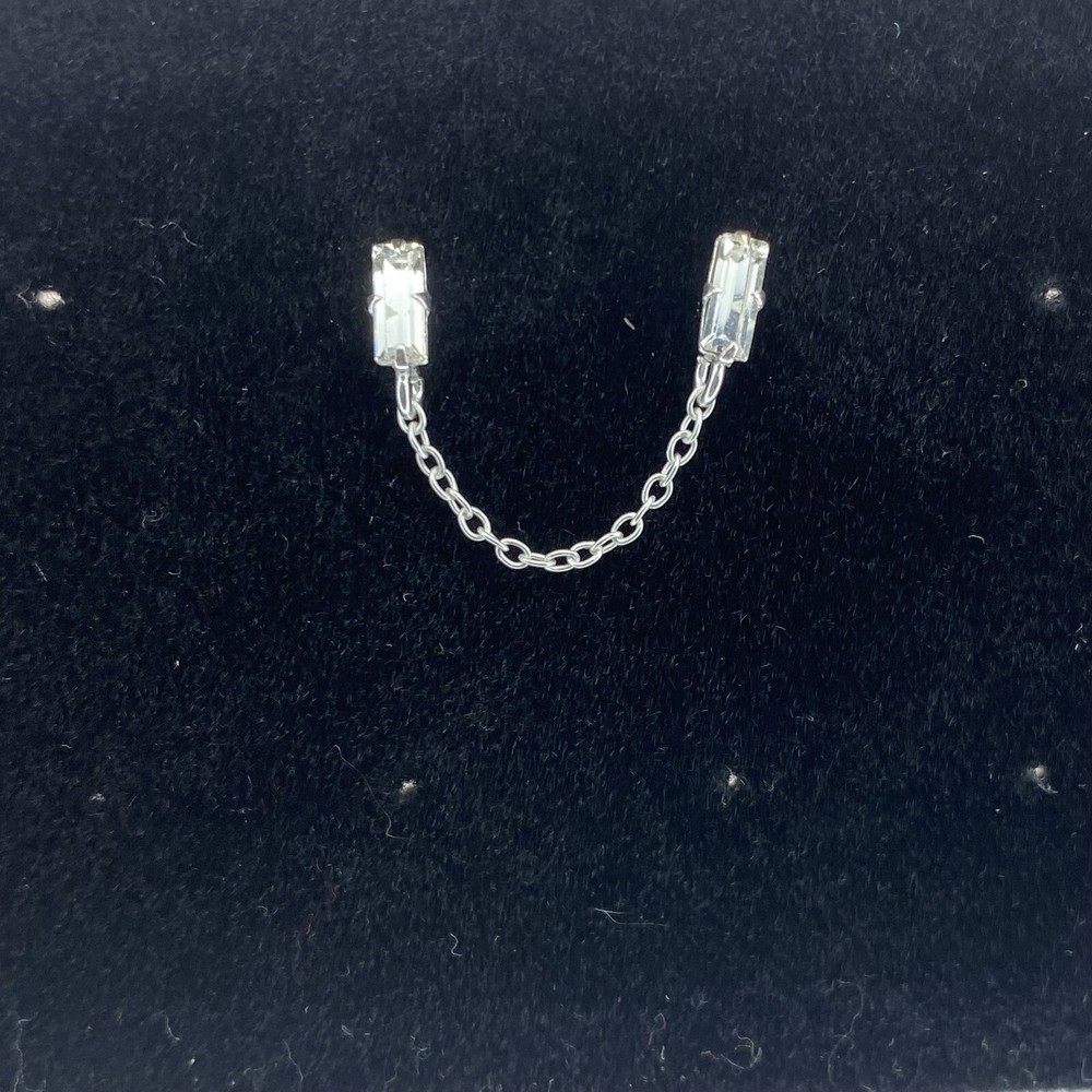Sterling Silver White Crystal Baguette Double Stud Earring w/ Chain Womens Teens See photos for the actual item available. Feel free to contact me with any questions. This beautiful sterling silver earring features double baguette-cut crystal studs connected by a delicate chain. The earring is perfect for any occasion, from weddings to birthdays to Mother's Day. The butterfly closure ensures a secure fit, while the prong setting style adds extra elegance to the design. This earring is made of 925 sterling silver, ensuring their quality and durability. The crystal gemstones are simulated and measure 30mm in width and 4mm in length, with a depth of 1mm. This earring is versatile and can be worn on the cartilage or lobe of the ear. Express your love for beauty, art, and fashion with this stunning double piercing earring. Shop our store with confidence as we offer 30-day returns on all purchases. Additionally you can save money by making multiple purchases to take advantage of our discount shipping policy. You will pay the highest shipping cost for a single item in your cart and $3 for each additional item.