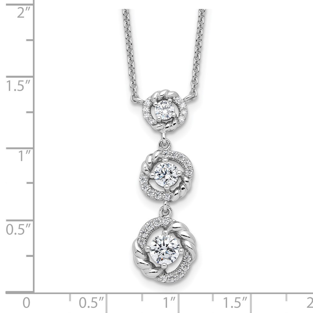 Sterling Silver Fancy Cubic Zirconia Dangle Necklace 16" w/2in Ext. 5.81gm