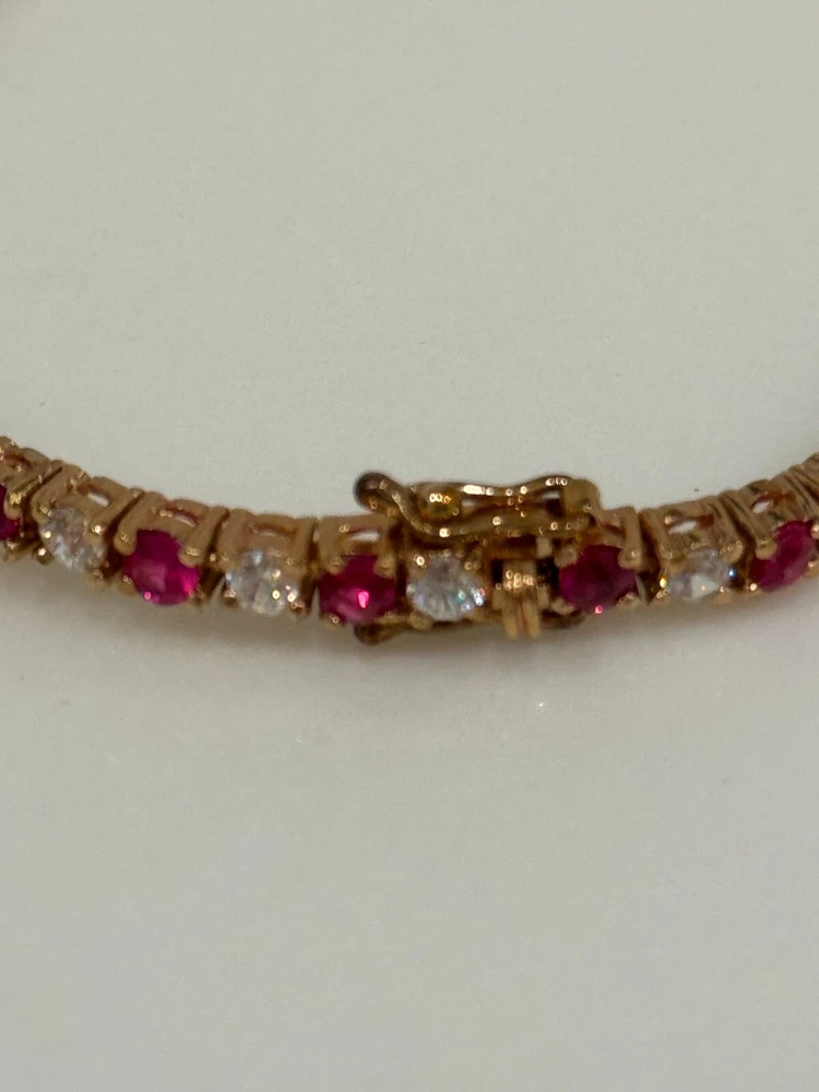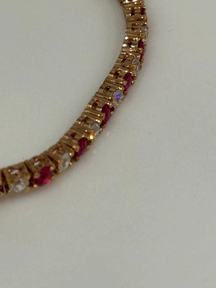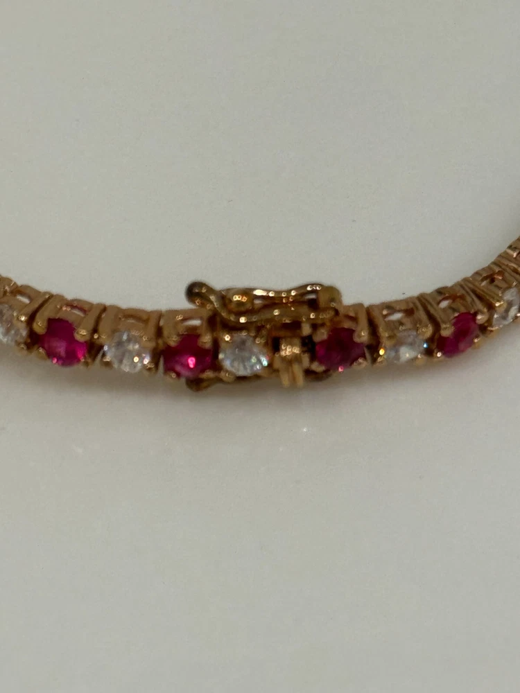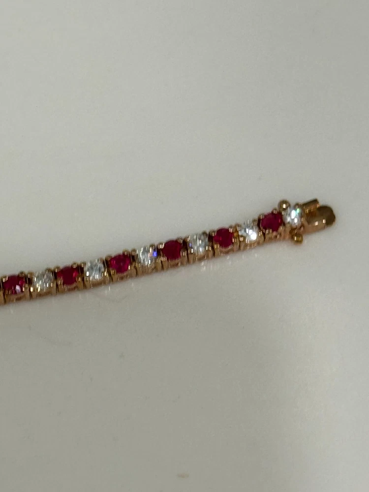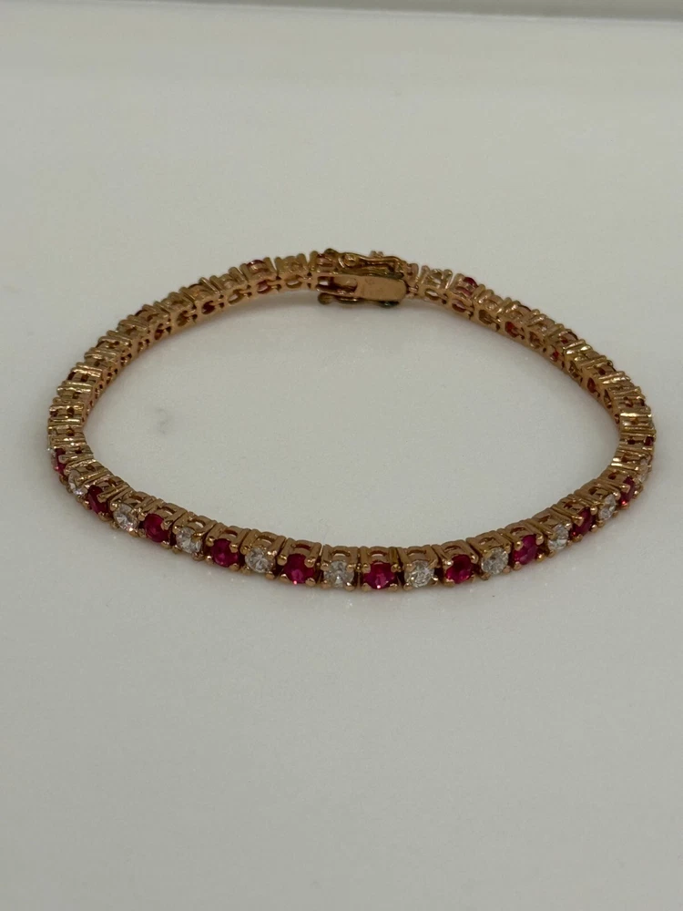This stunning bracelet is the perfect addition to any jewelry collection. With a beautiful red and clear cubic zirconia stone, this bracelet is sure to catch the eye. The 7.25" tennis style bracelet is made of high-quality 925 silver, making it a durable and long-lasting piece. The bracelet is perfect for any occasion, whether it's a night out on the town or a casual day at work. The white main stone color complements the red stone, making it a versatile piece that can be paired with any outfit. Don't miss out on the chance to add this gorgeous bracelet to your jewelry collection.
