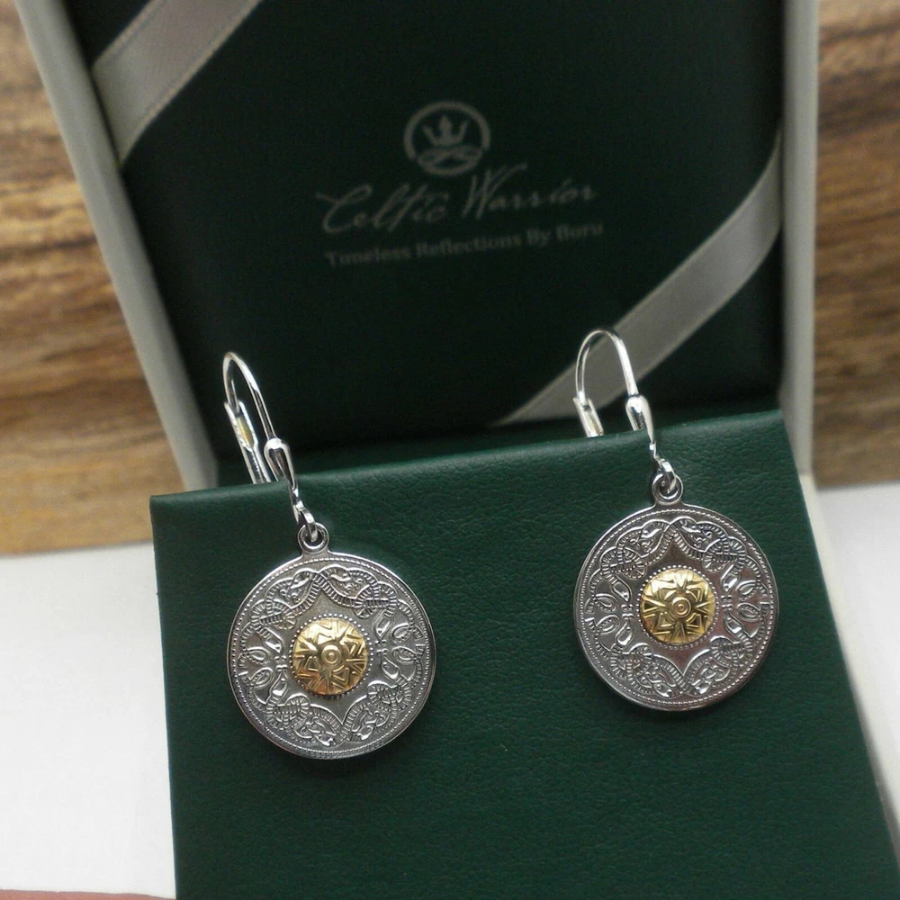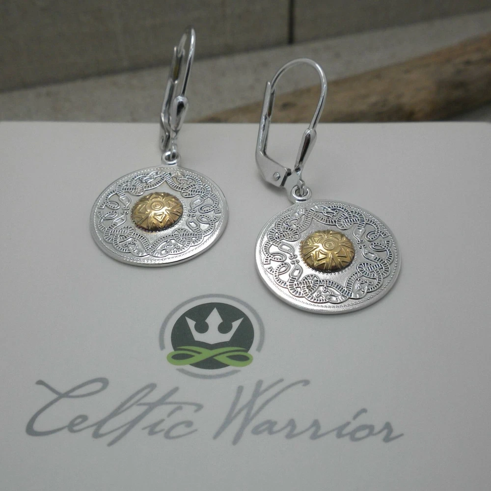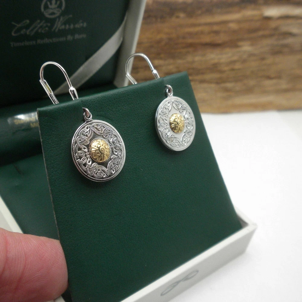 Sterling Silver IRISH MADE Celtic Warrior Shield Earrings with 18K Bead Boxed