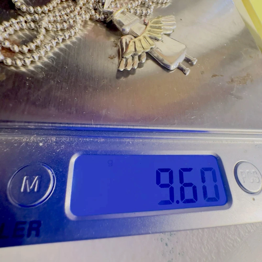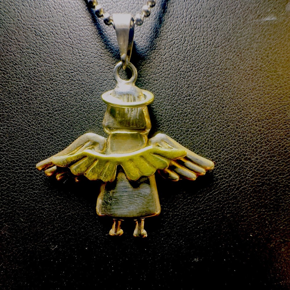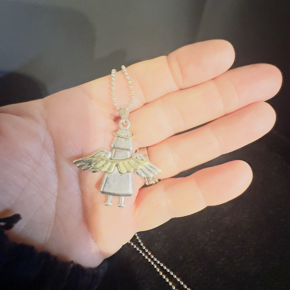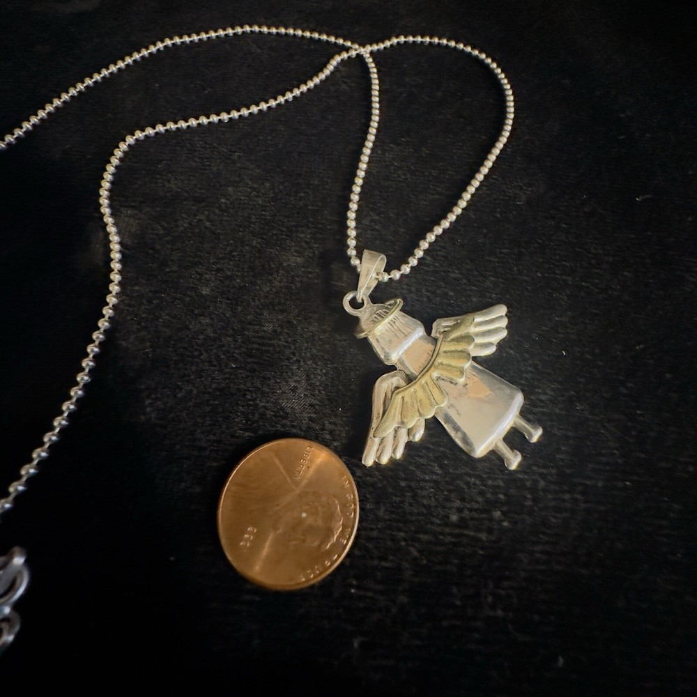 Sterling Silver 925 Mixed Metal Angel Wing Pendant Ball Beaded Necklace 20” Wings are gold tone Angel tested Sterling not marked Necklace is 925 Italy 9.6 g