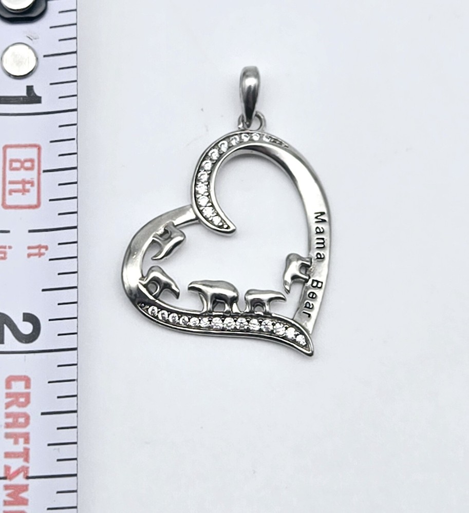Sterling Silver Mama Bear Heart Pendant with Mothers Love - 2.5g