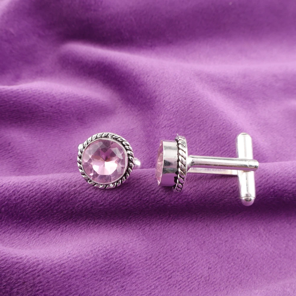 Sterling Silver Morganite Gemstone Pink Business Formal Classic Mens Cufflinks