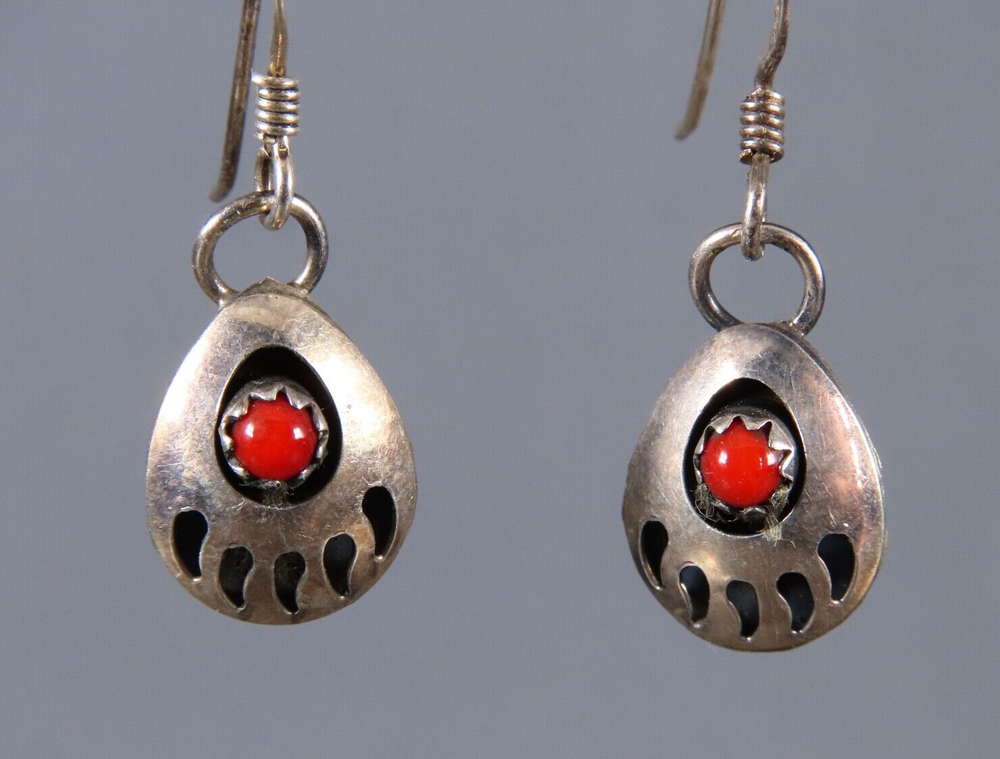 $ 123.42Vintage Sterling Silver Turquoise Native American Bear Dangle Earrings
