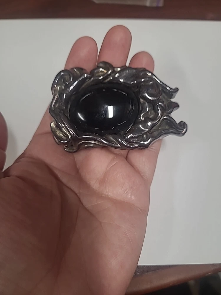Showcase your unique sense of style and elegance with this stunning Arik Idan brooch. Crafted from sterling silver, this brooch features an eye-catching onyx stone that adds a touch of sophistication to any outfit. The intricate Brutalist design is a true work of art, making it an ideal gift for Mother's Day, anniversary, or birthday. This brooch bears the signature of Arik Idan, a renowned artist. The black onyx stone and silver metal make a bold fashion statement, and the brooch is easy to wear with any outfit. Whether you're dressing up for a special occasion or adding a touch of glamour to your everyday look, this Arik Idan brooch is the perfect choice.