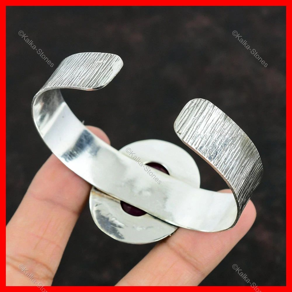 Secondary Stone: No Stone Colored Diamond Intensity: Not Applicable Brand: Unbranded Total Carat Weight: 5 gm above Type: Bracelet Seller Warranty: Yes Style: Bangle Occasion: Anniversary, Birthday, Engagement, Wedding Number of Gemstones: As Seen in Picture Vintage: No Gemstone Clarity Grade: Eye Clean Diamond Clarity Grade: Not Applicable Metal: Sterling Silver Diamond Color Grade: Not Applicable Main Stone: Kashmir Rubi Chain Type: Not Applicable Signed: Yes Country/Region of Manufacture: India Wholesale: Yes Shape: As Seen As Picture Color: Silver Era: Undated Main Stone Creation: Natural Certification: 100% Genuine Natural Kashmir Rubi Bracelet Item Length: Adjustable Main Stone Color: Red Charm Type: Traditional Country of Origin: India Antique: No Base Metal: Silver Number of Diamonds: As Seen in Picture Metal Purity: 925 Customized: No Setting Style: Bezel Features: Engraved, Nickel-Free, Handcrafted Cut Grade: Excellent Main Stone Shape: Oval Material: Crystal, Gemstone, Stone, Metal Theme: Beauty, Bohemian, Ethnic, Healing, Love, Luck, Special Occasion, Halo, Love & Hearts Seller Notes: “Handcrafted Gemstone Bangle Jewelry” Main Stone Treatment: Not Enhanced