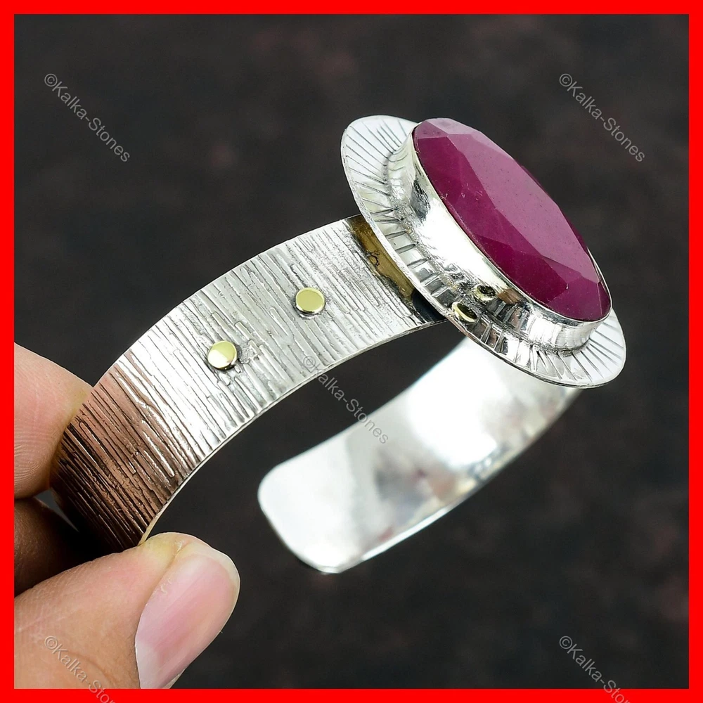 Note : Due to the natural formation of this gemstone. Slight variation in design and color are to be expected. Welcome to Kalka Stones Mothers day Sale Sterling Silver Oval Kashmir Rubi Gemstone Boho Bangle Bracelet Handmade Bangle, Sterling Silver Bangle, Kashmir Rubi Bangle, Handcrafted Bangle Specifications: SKU : KC-185 Gemstone : Kashmir Rubi Stone Shape : Oval Metal Purity : 925 Sterling Silver Bangle Length : Adjustable ----------------------------------------------------------------------------------------------------- Indulge in the captivating allure of Silver Jewelry, a beloved choice cherished for its rare properties and countless rewards. Unveil the charm of its unique attributes, as it embraces you with a touch of elegance and healing wonders. Discover the enigmatic world of Silver, where beauty and benefits intertwine harmoniously. Properties: Spiritual Connection: Throughout history, silver has been revered for its mystical ties to the moon and spiritual realms. Embrace its ethereal energy, inviting a sense of balance and harmony into your life. Affordability and Luxury: Experience the best of both worlds with silver's accessibility and opulence. Enjoy the elegance of precious metal jewelry without breaking the bank. Timeless Elegance: From classic designs to contemporary masterpieces, silver jewelry transcends trends, embodying everlasting elegance for any occasion. Benefits: Mindfulness Reminder: Wearing silver jewelry can serve as a mindfulness reminder, encouraging you to stay present and appreciate the beauty of everyday moments. Accessible Luxury: Indulge in the luxury of silver jewelry without the extravagant price tag, making it a cherished addition to any jewelry collection. Positive Energy Amplifier: As a conductor of energy, silver is believed to amplify positive intentions and affirmations, manifesting one's desires with greater clarity. Enhanced Self-Expression: With its versatility and wide array of designs, silver jewelry allows for individual expression, empowering wearers to reflect their unique style. Therapeutic Soothing: Silver's cooling properties are believed to provide a gentle therapeutic effect on the body and mind, offering a sense of relief and tranquility. ----------------------------------------------------------------------------------------------------- For Mother's Day Gift For Father's Day Gift For Promise For Valentine' Day For Halloween Party For Christmas Day Gift For New Year Party For Mom For Her ----------------------------------------------------------------------------------------------------- Discover the perfect design and receive personalized advice by contacting us. We're always here to assist you! Each piece is meticulously crafted by hand in our workshop, infused with Love and Care. Your visit means the world to us, and we hope you relish the shopping experience. Happy shopping! ----------------------------------------------------------------------------------------------------- Welcome to Kalka Stones, where exquisite craftsmanship meets high-quality sterling silver jewelry. Our handmade collection boasts an array of stunning silver gemstone jewelry, meticulously adorned to complement your unique style. Unleash your creativity and design your own dazzling jewelry collection with genuine and natural gemstones. Our skilled artisans carefully handcrafted each piece, ensuring its authenticity and uniqueness. Rest assured, the jewelry you see on our website is precisely what you'll receive, a testament to our commitment to excellence. Discover the beauty of our jewelry, crafted with love and passion, just for you.