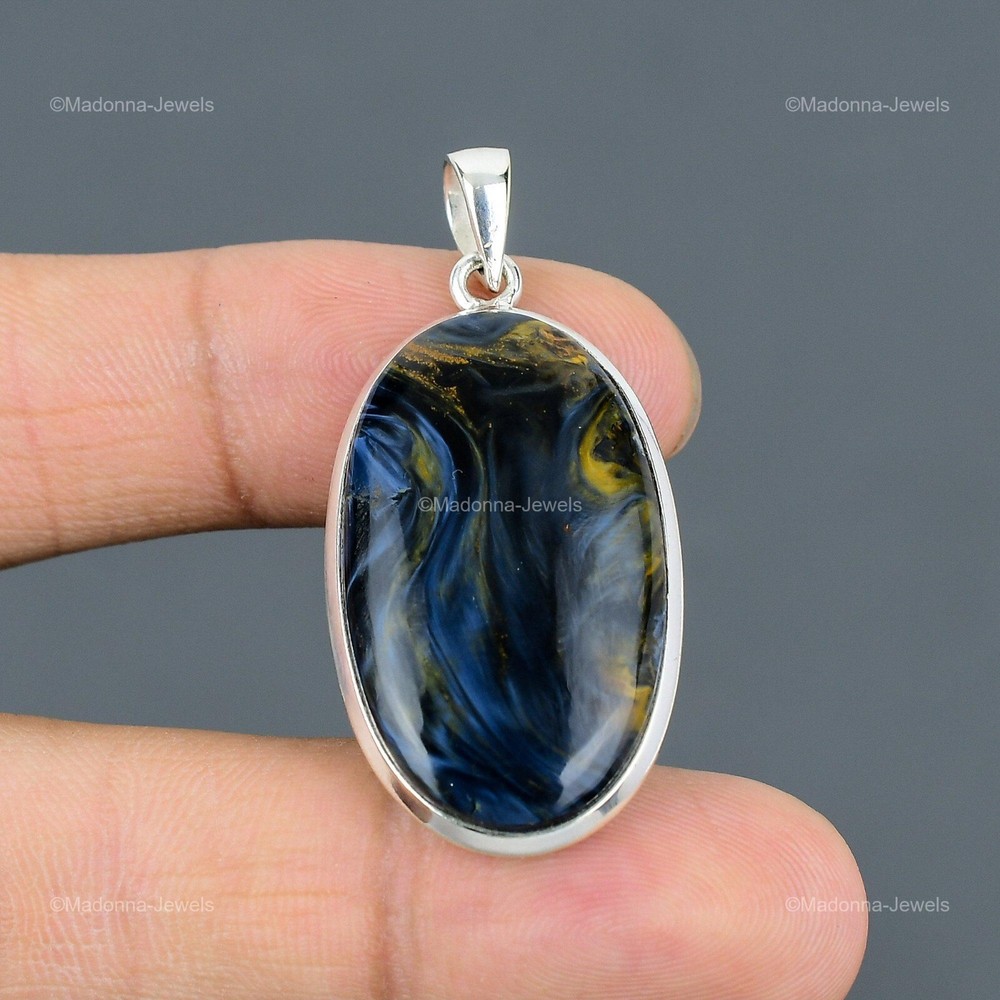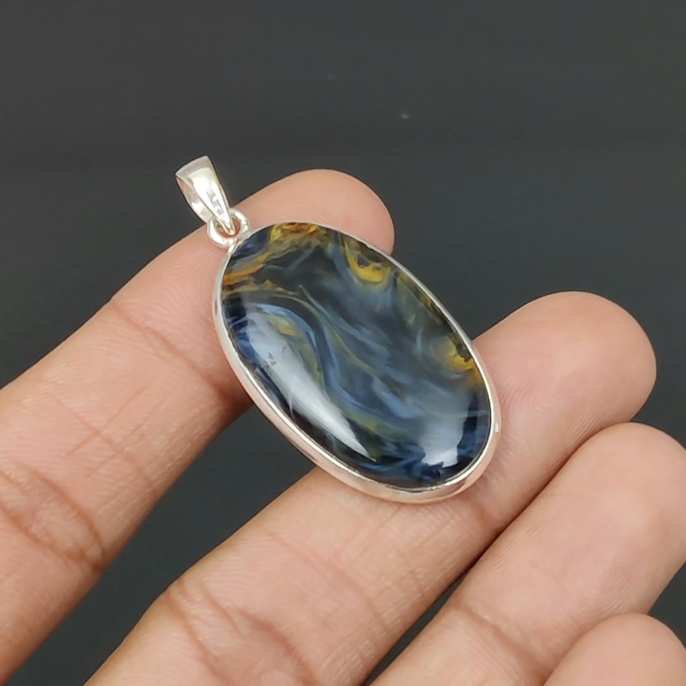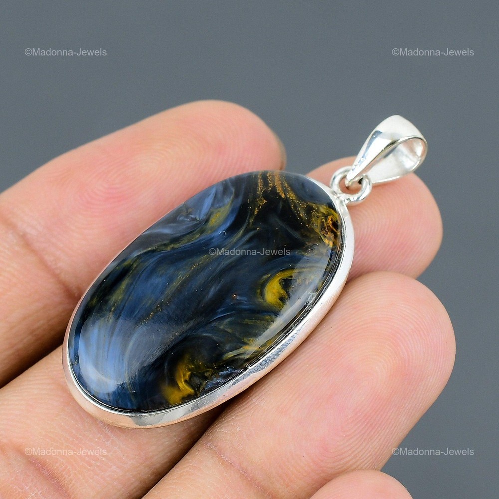 Welcome to Madonna Jewels Mothers day Sale Sterling Silver Oval Pietersite Stone Engagement Bezel Pendant Handmade Pendant, Sterling Silver Pendant, Pietersite Pendant, Handcrafted Pendant SKU : VP-111 Gemstone : Pietersite Stone Shape : Oval Metal Purity : 925 Sterling Silver Length : 64 Millimeters Width : 30 Millimeters Silver Jewelry is a popular choice for many people due to its unique properties and numerous benefits. Here are some of the key properties and benefits of wearing silver jewelry: Properties: Durability: Silver is a durable metal that can withstand regular wear and tear. Malleability: Silver is highly malleable, which means it can be easily shaped and molded into various designs. Conductivity: Silver is an excellent conductor of heat and electricity. Anti-bacterial: Silver has natural anti-bacterial properties, which can help prevent the growth of harmful bacteria. Benefits: Aesthetic appeal: Silver jewelry is known for its beauty and versatility, and can be worn with a variety of outfits and styles. Hypoallergenic: Silver is generally hypoallergenic, which means it is unlikely to cause an allergic reaction in most people. Healing properties: Some people believe that wearing silver jewelry can help with various physical and emotional conditions, such as arthritis, anxiety, and depression. Spiritual significance: Silver has been used in various cultures for its spiritual and symbolic significance, and wearing silver jewelry can help to connect with these traditions. Investment value: Silver is a precious metal that retains its value over time, and investing in silver jewelry can be a smart financial decision. Overall, silver jewelry offers a unique combination of beauty, durability, and benefits, making it a popular choice for people around the world. For Mother's Day Gift For Father's Day Gift For Promise For Valentine' Day For Halloween Party For Christmas Day Gift For New Year Party For Mom For Her If you can't find the information you need or need some advice for your design? Feel free to contact us. We are fast to reply :) All our work is made by hand with Love and Care in our workshop Thank you so much for visiting and hope you enjoy shopping with us Madonna Jewels is dedicated to providing customers with high-quality sterling silver jewelry. As a manufacturer of handmade jewelry, we offer an extensive range of silver gemstone jewelry that demonstrates our exceptional craftsmanship. We are skilled in adorning gemstones to complement any style, and we give you the freedom to design your own jewelry collection with dazzling, natural, and genuine gemstones. Our talented craftsmen carefully handcraft each jewelry piece, ensuring that it is unique and made with authentic gemstones. The jewelry item you see on our website is precisely the same one you will receive.