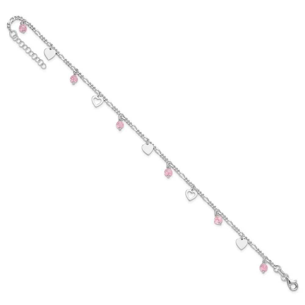 925 Sterling Silver Heart Dangle Anklet 10 Inch 2.43 Grams for Women