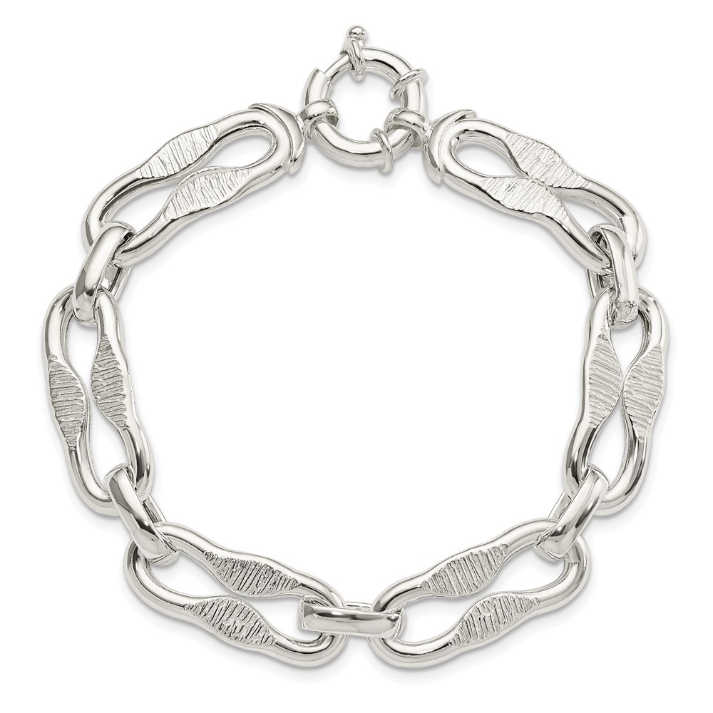 Features: Finish:Polished Length of Item:8 in Chain Type:Link, Other Chain Width:10.85 mm Clasp /Connector:Spring Ring (Fancy) Clasp Thickness (Female end):2.45 mm Clasp Thickness (Male end):3 mm Clasp Width (Female end):5.4 mm Clasp Width (Male end):14.3 mm Feature:Solid Material: Primary:Sterling Silver Width of Item:10.85 mm Bracelet Type:Links Texture:Textured Material: Primary - Color:White All weights and measurements are approximate and may vary slightly from the listed information. Welcome to diamond_6720 Payments We accept all Ebay approved payment. Please sent the payment to us within 8 days after the auction has ended, or you will have unpaid case auto open by eBay. Shipping Policy We will ship all items within 1 business days of purchase during the work week (M-F) excluding holidays. If you order on Friday, your order will be shipped the following business day. Tracking will be provided when it becomes available. We will only ship to a PayPal Verified Address. Please make sure your address is current and correct. If the information does not match, your order may be canceled. Buyers are responsible for all customs, duties and taxes for your respective countries. Delivery times for International Shipping will vary. California Buyers Pay 9.0% Tax on all orders. case auto open by eBay. Return Policy & Exchange Returns or Exchange are accepted. Buyer must contact us within 30 days after the item is received. Item must be returned in unworn and resalable condition. We will only issue a refund for the purchase price, excluding any shipping fees. If we are at fault, we will provide a full refund. Buyer is responsible for all return shipping costs. BUYERS FEEDBACK If you have any concerns regarding your purchase, please contact us via eBay Message, we assure you that a satisfactory resolution will be reached. Your feedback is very important to us Do remember to give us 5 star rating(*****) if you are satisfied with our product & service .