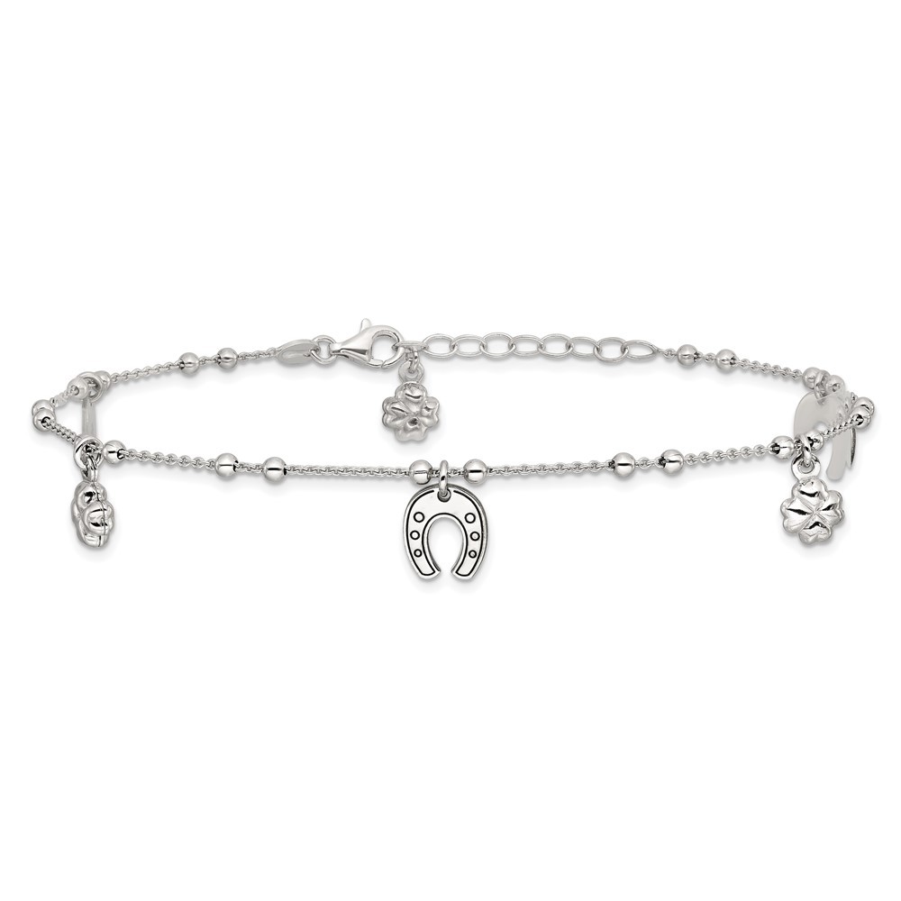 Features: Finish:Polished Length of Item:10 in Chain Length:9 in Chain Type:Cable Chain Width:1.15 mm Charm/Element Length:9.5 mm Charm/Element Width:8.88 mm Clasp /Connector:Lobster (Fancy) Extender Length:1 in Feature:Solid Manufacturing Process:Machine Made Width of Item:8.88 mm Engravable:Not Recommended Anklet Type:Anklets with Stations Number of Elements:6 All weights and measurements are approximate and may vary slightly from the listed information. Welcome to diamond_6720 Payments We accept all Ebay approved payment. Please sent the payment to us within 8 days after the auction has ended, or you will have unpaid case auto open by eBay. Shipping Policy We will ship all items within 1 business days of purchase during the work week (M-F) excluding holidays. If you order on Friday, your order will be shipped the following business day. Tracking will be provided when it becomes available. We will only ship to a PayPal Verified Address. Please make sure your address is current and correct. If the information does not match, your order may be canceled. Buyers are responsible for all customs, duties and taxes for your respective countries. Delivery times for International Shipping will vary. California Buyers Pay 9.0% Tax on all orders. case auto open by eBay. Return Policy & Exchange Returns or Exchange are accepted. Buyer must contact us within 30 days after the item is received. Item must be returned in unworn and resalable condition. We will only issue a refund for the purchase price, excluding any shipping fees. If we are at fault, we will provide a full refund. Buyer is responsible for all return shipping costs. BUYERS FEEDBACK If you have any concerns regarding your purchase, please contact us via eBay Message, we assure you that a satisfactory resolution will be reached. Your feedback is very important to us Do remember to give us 5 star rating(*****) if you are satisfied with our product & service .