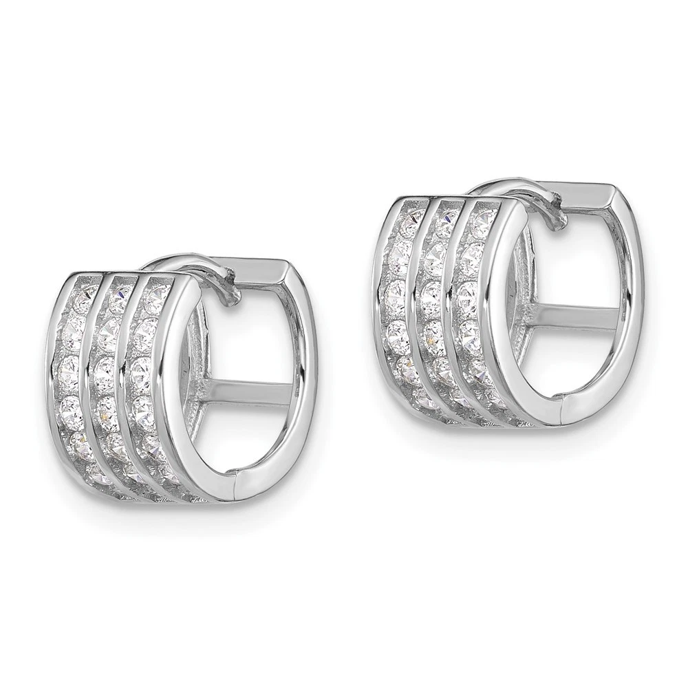Sterling Silver Rhodium-plated 3 Row Cubic Zirconia Hinged Hoop Earrings 1.99gm