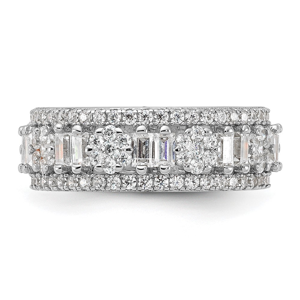 Features: Finish:Polished Stone Type_1:Cubic Zirconia Stone Color_1:White Plating:Rhodium Band Width:6.5 mm Stone Treatment_1:Synthetic Ring Type:Eternity Plating Color:Silver Tone Stone Creation Method_1:Synthetic All weights and measurements are approximate and may vary slightly from the listed information. Welcome to diamond_6720 Payments We accept all Ebay approved payment. Please sent the payment to us within 8 days after the auction has ended, or you will have unpaid case auto open by eBay. Shipping Policy We will ship all items within 1 business days of purchase during the work week (M-F) excluding holidays. If you order on Friday, your order will be shipped the following business day. Tracking will be provided when it becomes available. We will only ship to a PayPal Verified Address. Please make sure your address is current and correct. If the information does not match, your order may be canceled. Buyers are responsible for all customs, duties and taxes for your respective countries. Delivery times for International Shipping will vary. California Buyers Pay 9.0% Tax on all orders. case auto open by eBay. Return Policy & Exchange Returns or Exchange are accepted. Buyer must contact us within 30 days after the item is received. Item must be returned in unworn and resalable condition. We will only issue a refund for the purchase price, excluding any shipping fees. If we are at fault, we will provide a full refund. Buyer is responsible for all return shipping costs. BUYERS FEEDBACK If you have any concerns regarding your purchase, please contact us via eBay Message, we assure you that a satisfactory resolution will be reached. Your feedback is very important to us Do remember to give us 5 star rating(*****) if you are satisfied with our product & service .