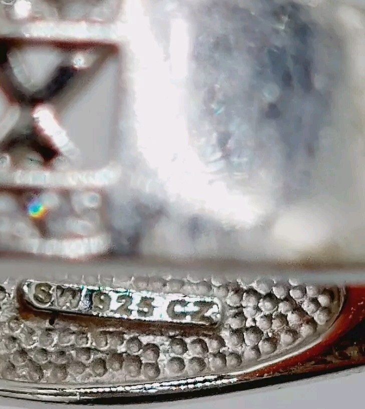 Ring Size:10Main Stone:Cubic ZirconiaBrand:SWMetal Purity:925Tested:Acid & MagnetMain Stone Color:WhiteType:RingSeller Warranty:YesMain Stone Shape:RoundMetal:Sterling SilverComments:Beautiful statement ring for any occasion.Total Carat Weight:2.00 - 4.99Style:Band, Cocktail, StatementOccasion:Anniversary, Birthday, Christmas, Mother's Day, Valentine's Day, Wedding, Daily Wear, Any Occasion, Date NightBase Metal:Sterling Silver