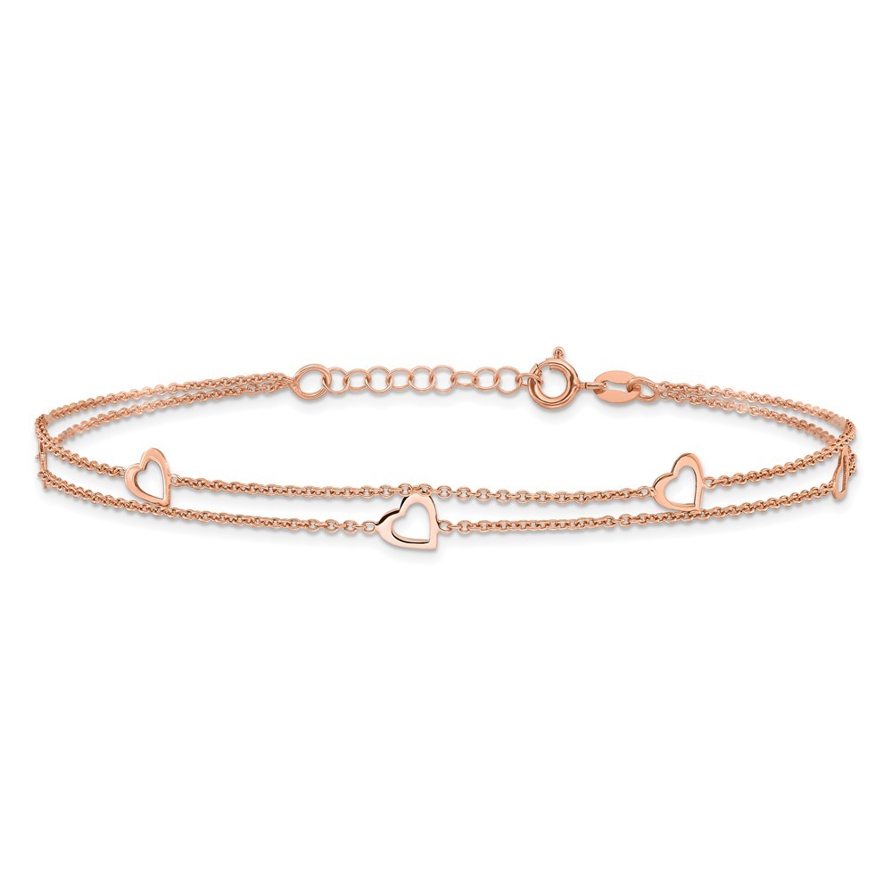 $ 38.02Sterling Silver Polished Hearts Anklet 10" for Women w/1in Ext. 3.29gm