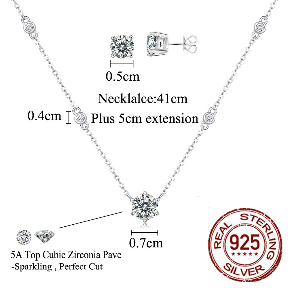 Round Cubic Zirconia Chain Necklace and Stud Earring Sterling Silver Jewelry Set There’s an old saying that: Jewelry is woman’s best friend. And one appropriate luxury jewelry helps to spice up your charm and beauty. And here’s the reason why you choose us: ★ We adopts high-grade Cubic Zirconia, which displays pure and fascinating color; ★ All our items are Elaborate, the texture is smooth and with fancy look, and will be appropriate for so many occasions; ★ Our items are with Exquisite Design, which shows your excellent taste, and could catch people’s attention easily. ★ Ideal gift for mother, wife, girlfriend, daughters, brides, bridesmaids, ect. Specification Type: 925 Sterling Silver Jewelry Set Stone Material: Cubic Zirconia Base Metal Material: 925 Silver Metal Material: 925 Sterling Silver Shape: Small Round Color: White Suitable Occasion: Daily, Holidays, Party, Engagement, Wedding, Anniversary, Valentine’s Day, Carnival, Performance, ect. Package Includes 1 Pair of CZ Stud Earrings 1 Piece of CZ Necklace Please note: *Please bear in mind that there might be 1~2cm difference due to manual measurement. *Our digital images are as accurate as possible. However, different monitors may cause colors to vary slightly. *We offer after-sale service, if there is any item problem, please feel free to contact us via eBay message first, your kind understanding is much appreciated. About Us Payment Shipping Returns Contact us About Us Topjewel33 is a newly-established online store which dedicates to provide excellent luxury jewelry products, such as earrings, rings, necklaces, bracelets, brooches, hair accessories, and high grade jewelry sets. We target worldwide market, and we strive for offering you unbeatable low price and satisfied customer service. Payment We accept PayPal payment only. Payment must be received within 7 days from the date of purchase. Shipping We do hope all our customers could receive the order asap, so normally, the order will be sent out within 2 working days. And as the delivery is handled by the third party, sorry that we could not guarantee which date you could receive the package. And sometimes the delivery might be a little bit delay, especially in high volume or holiday seasons. However, please don’t worry and feel free to contact us via eBay message, and we will do our best to help. And we sincerely apologize for any inconvenience may cause. Sometimes custom tax might be required, and we are afraid that it will be covered by the buyers, thank you for kind understanding. Returns We provide 30 days money back return policy. And if you have any problem with the item, please make sure the item is in the original package and feel free to contact us via eBay message first, thank you for kind understanding and cooperation. Contact us We offer customer service, if you have any problem with the item before/during/after the purchase, please feel free to contact us via eBay message, and we will get back to you asap. Thank you for your kind patience.