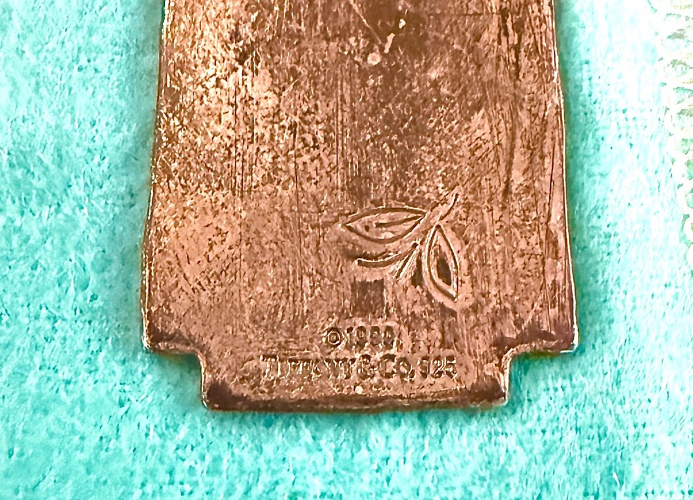 The Sterling Silver Tiffany & Co. 1999 Bamboo and Beetle Bookmark with Pouch is a classic and elegant accessory for book lovers. Made with high-quality sterling silver with a pattern of intricate bamboo design, this bookmark showcases the timeless style of Tiffany & Co. The bookmark comes with a protective pouch, making it a perfect gift for those who appreciate fine craftsmanship and unique designs.