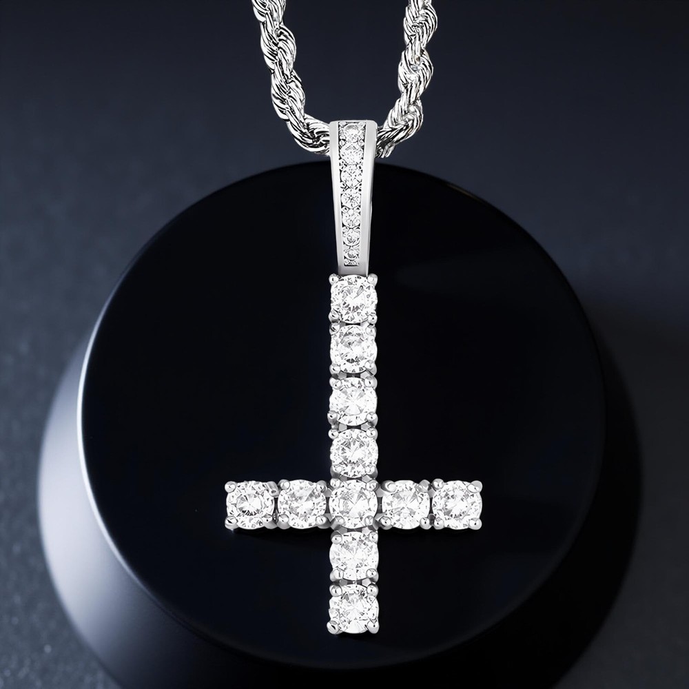PREMIUM MATERIALS: Crafted from genuine 925 Sterling Silver with 14K gold filled plating for lasting elegance and durability DESIGN FEATURES: Upside down cross pendant adorned with sparkling cubic zirconia stones in a modern hip hop style VERSATILE WEAR: Suitable for both men and women, perfect for expressing personal style and faith STATEMENT PIECE: Eye-catching inverted cross design combines religious symbolism with contemporary fashion GIFT READY: Makes a meaningful present for special occasions, combining spiritual significance with trendy appeal