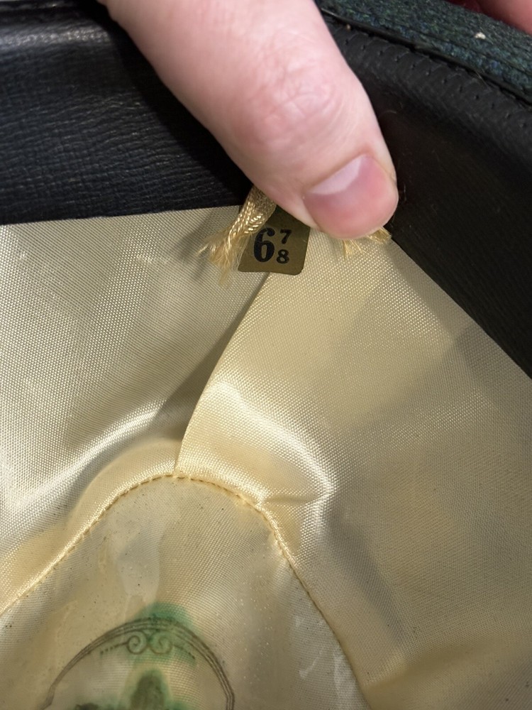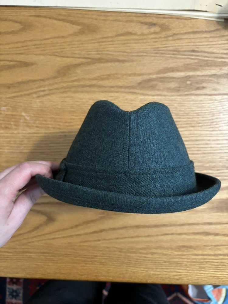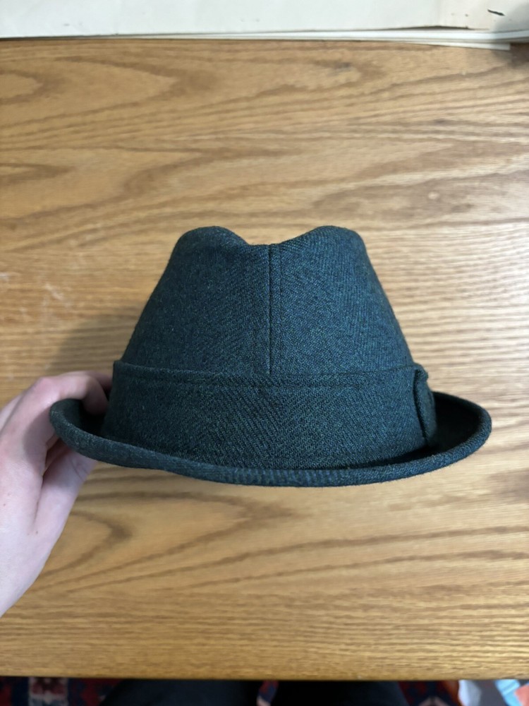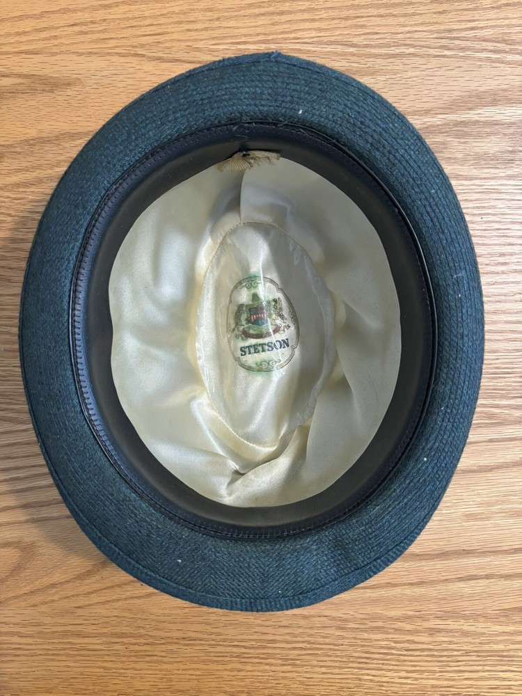 Is it a tribe? Is it a fedora? I don’t know. I am just an eBayseller. This is in great condition however it does have some slight wear and tear from being used. It is a gorgeous blue green color that cannot be captured with the camera. Absolutely gorgeous hat size is six 7/8 Hat will be shipped with extreme care as to maintain its condition