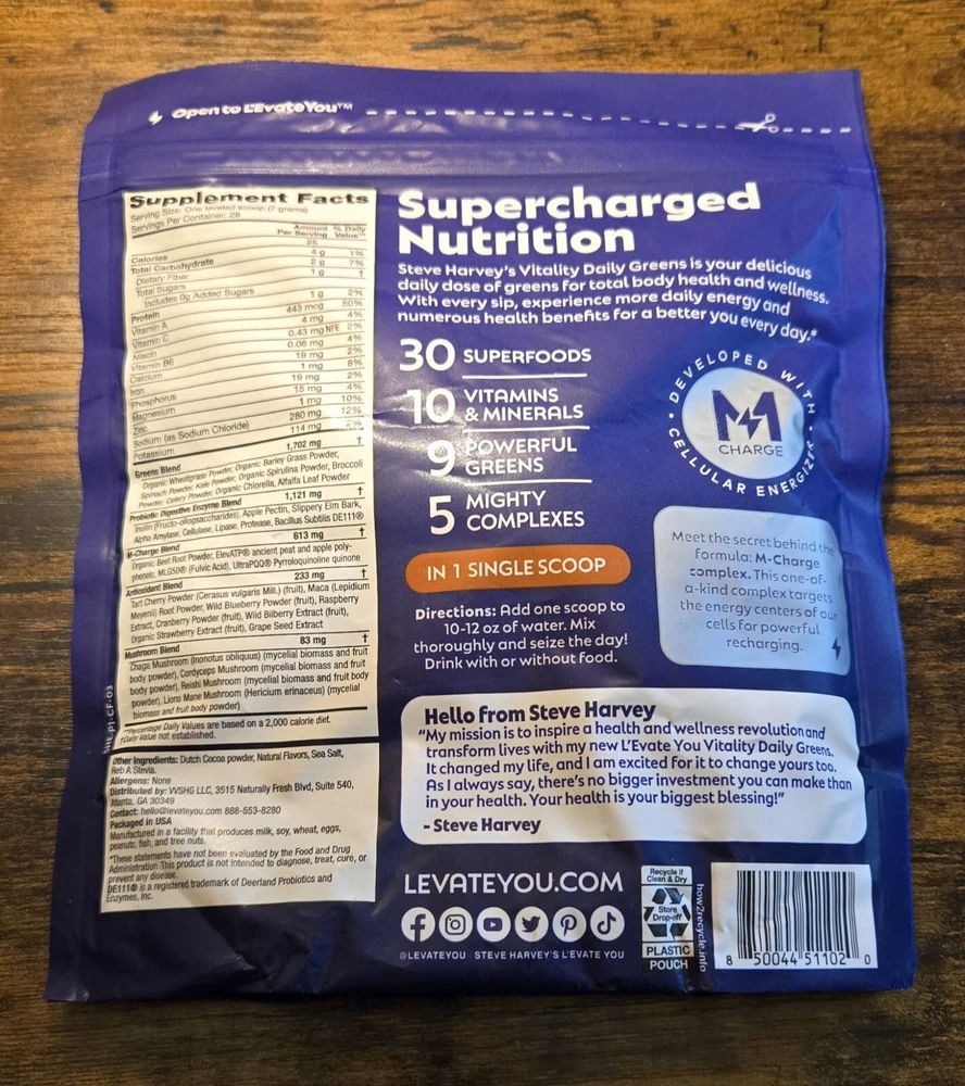 Steve Harvey's L'Evate You Vitality Daily Greens Chocolate 28 servings 7/25. Shipping is FAST AND FREE! We ship all items with the utmost care.