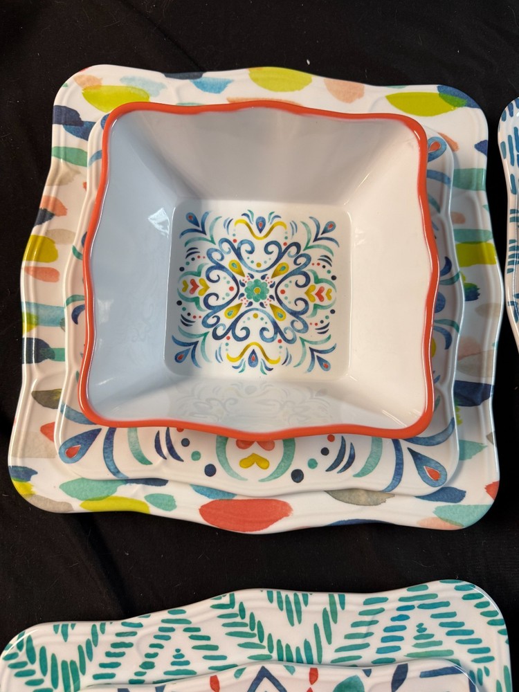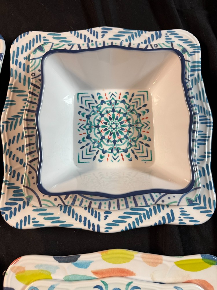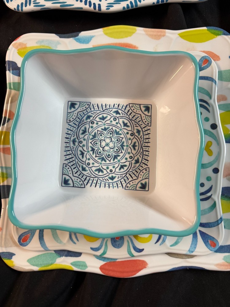 Add vibrant, artistic style to your table with this Steve Haskamp melamine dinnerware set , featuring 4 complete place settings . Known for bold colors and playful designs, Steve Haskamp pieces are perfect for casual dining, outdoor entertaining, or everyday use. This set includes 4 large plates, 4 small plates, and 4 bowls , all made from durable, lightweight melamine. Ideal for patios, picnics, RVs, or families looking for a colorful and practical dinnerware option. Set Includes: 4 Dinner Plates 4 Small Plates 4 Bowls S2-96