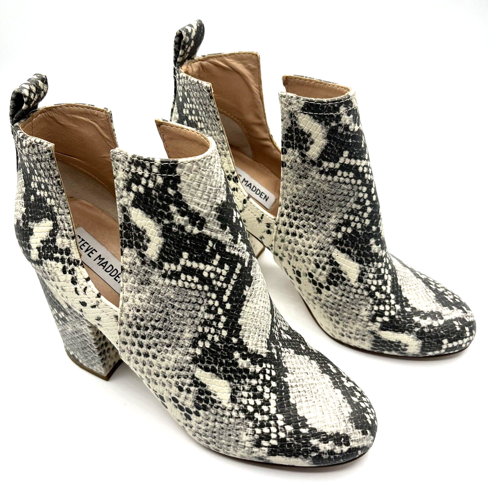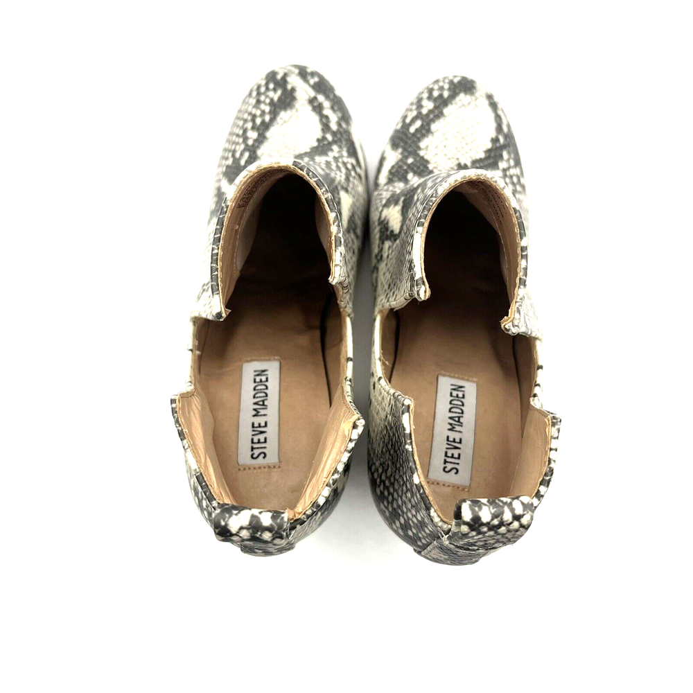 Unleash your wild side with these Steve Madden ankle boots, crafted for the fashion-forward woman. In a sleek gray snakeskin pattern, these boots feature a pull-on design that combines convenience with contemporary style. The faux lining ensures comfort while the sturdy block heel adds a touch of sophistication with its 3 to 3.9-inch height, perfect for elevating any outfit. Designed with a synthetic upper and a durable leather finish, these boots are a testament to quality and style. The 8.5 US size fits true to size, ensuring a great fit. With their distinctive snake theme and versatile platform style, they're an ideal choice for those looking to make a subtle, yet striking statement.