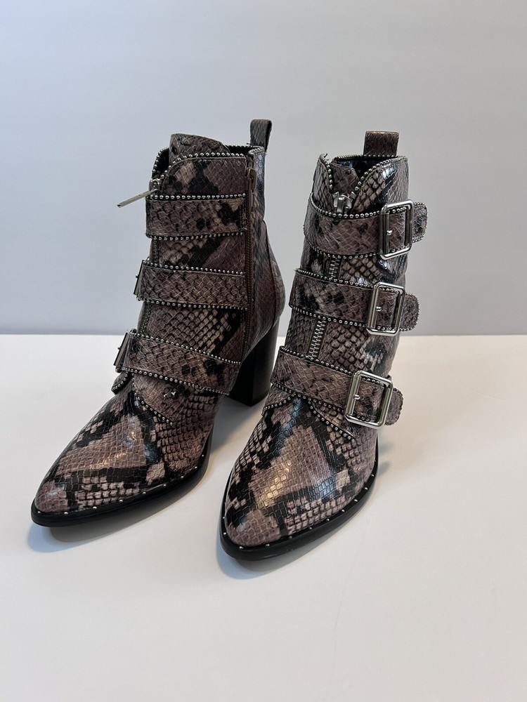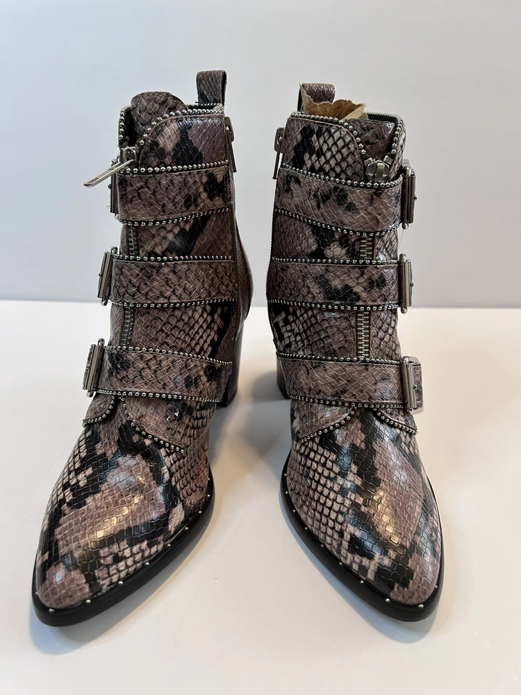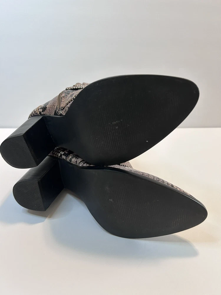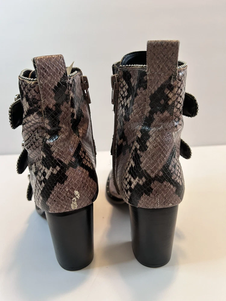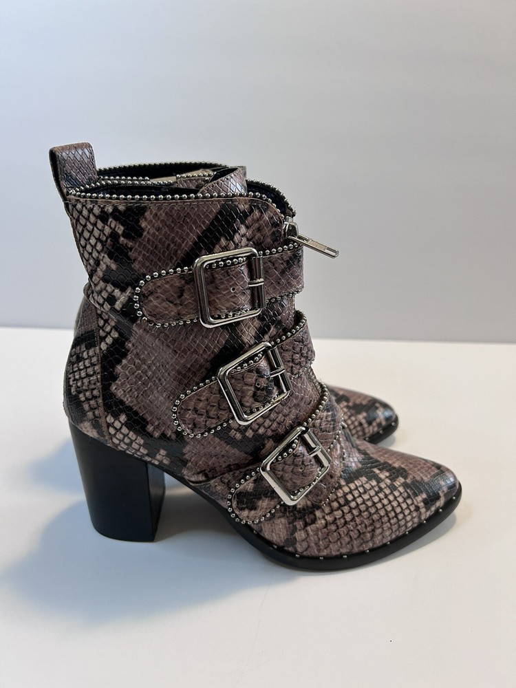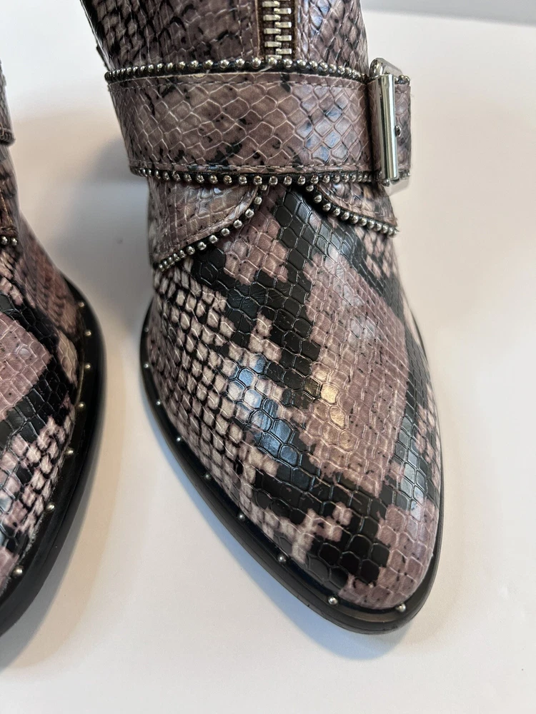 Steve Madden Hattie Snakeskin Boots with Block Heel Studded Straps Size 7 Zip Closure