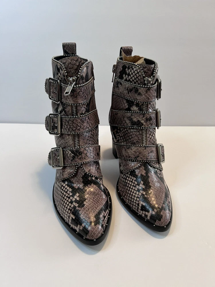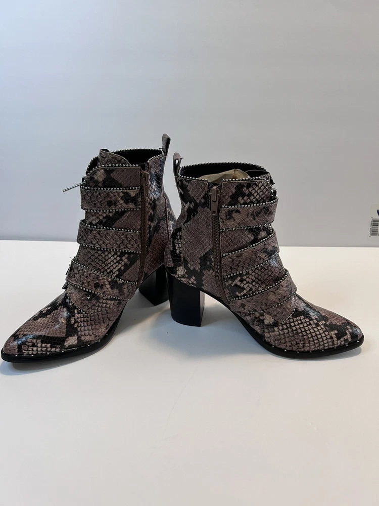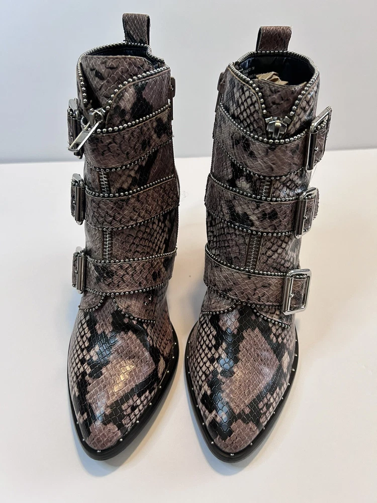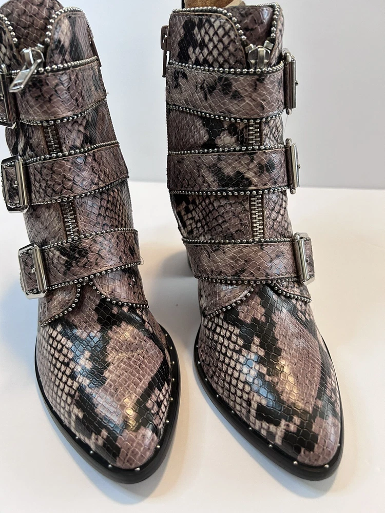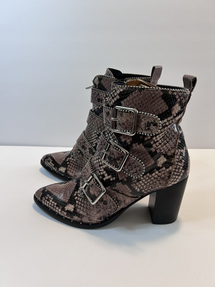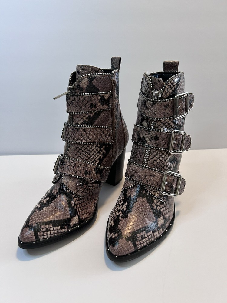 Steve Madden Hattie Snakeskin Boots with Block Heel Studded Straps Size 7 Zip Closure