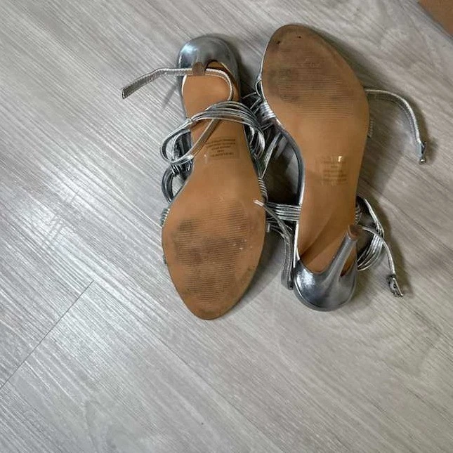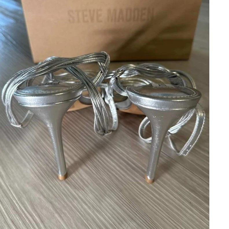 Steve Madden Lele Silver Metallic Strappy Lace Up Stiletto Heels Sandals Size 10