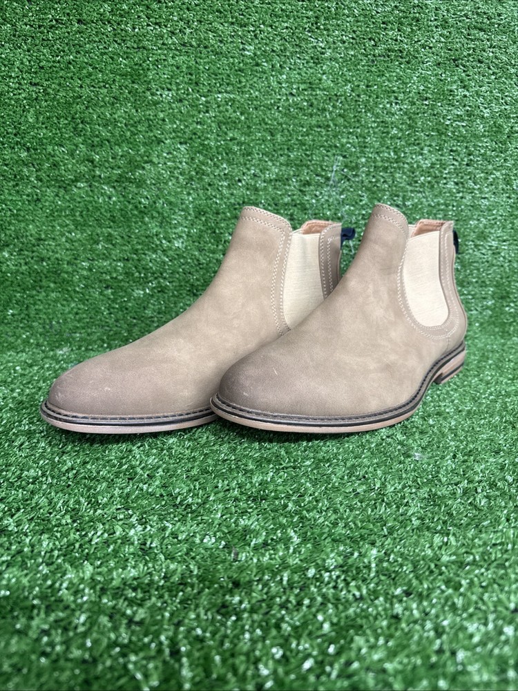 Steve Madden Men's M-grizon Taupe Sued Chelsea Boot in size 8.5 features a beige suede upper material. This Chelsea style boot from Steve Madden is designed for men and is part of the Men's Shoes category. Listed by: MDT Date:01/16/25 Condition: new in box Shade/size: 8.5 SKU:E10 Has box damage.