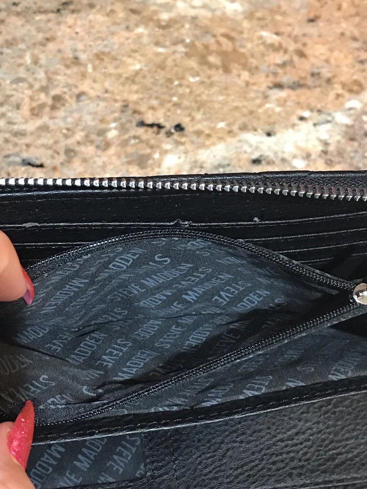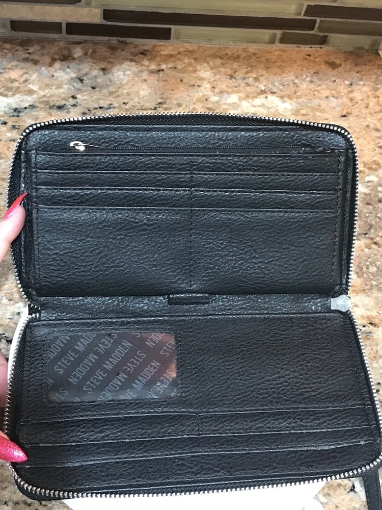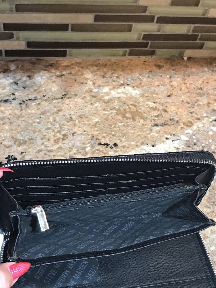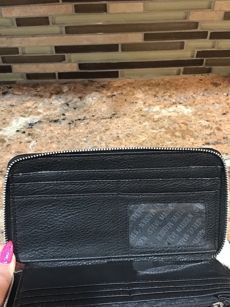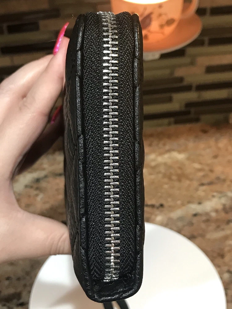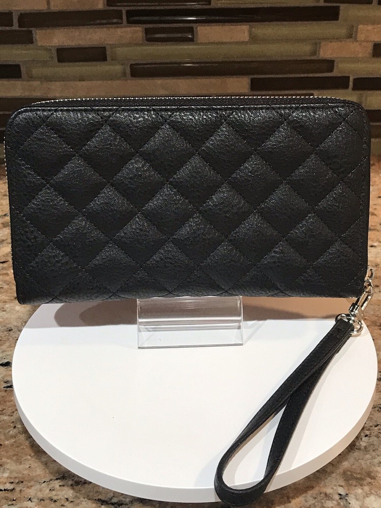 -Condition: Pre-owned ✅ ; in excellent condition -Interior wear (some rubbing/peeling in some areas) -Color: Black 🖤 -Large Organizer Wallet/Wristlet 🔥 -Separated Compartments -Credit Card Slots -ID Window -Zip Around -Perfect for traveling ✈️ 🧳 💯 -Silver Hardware