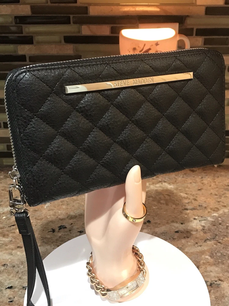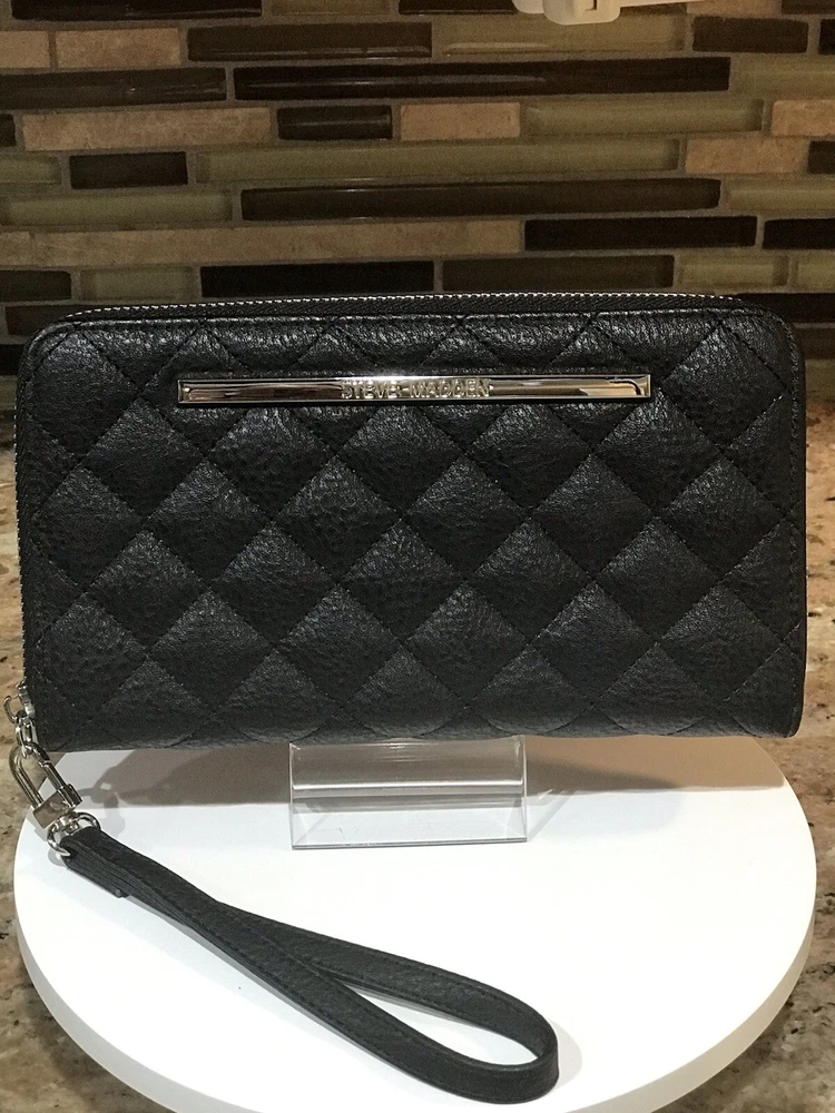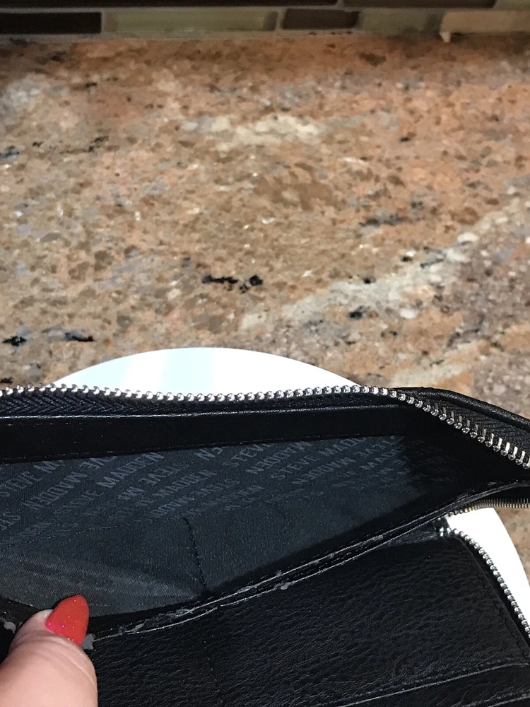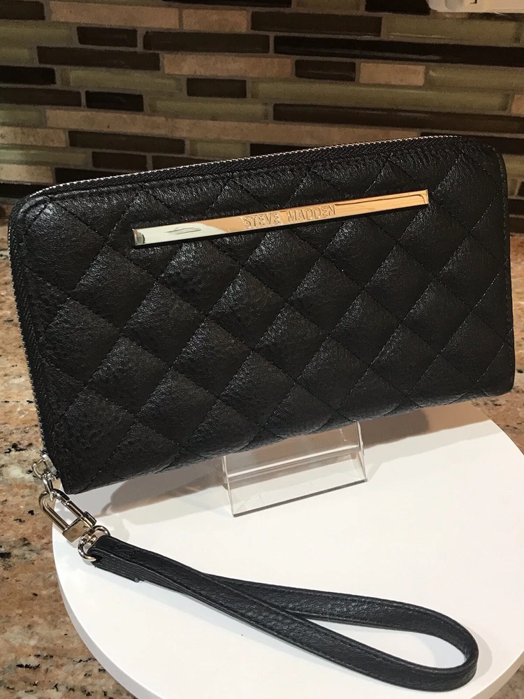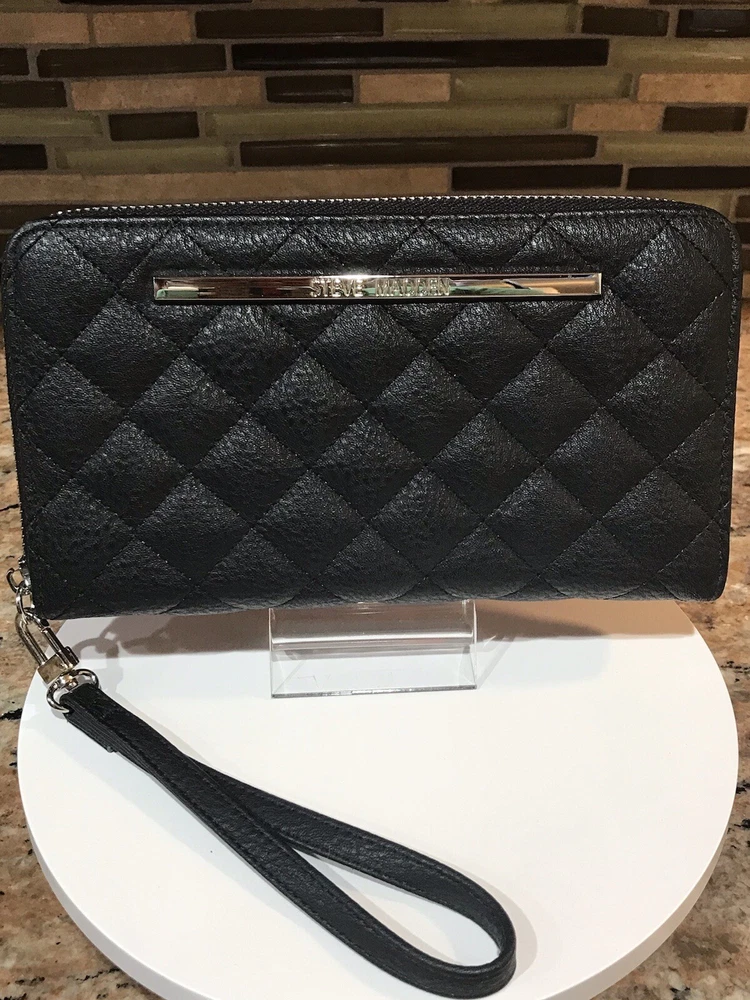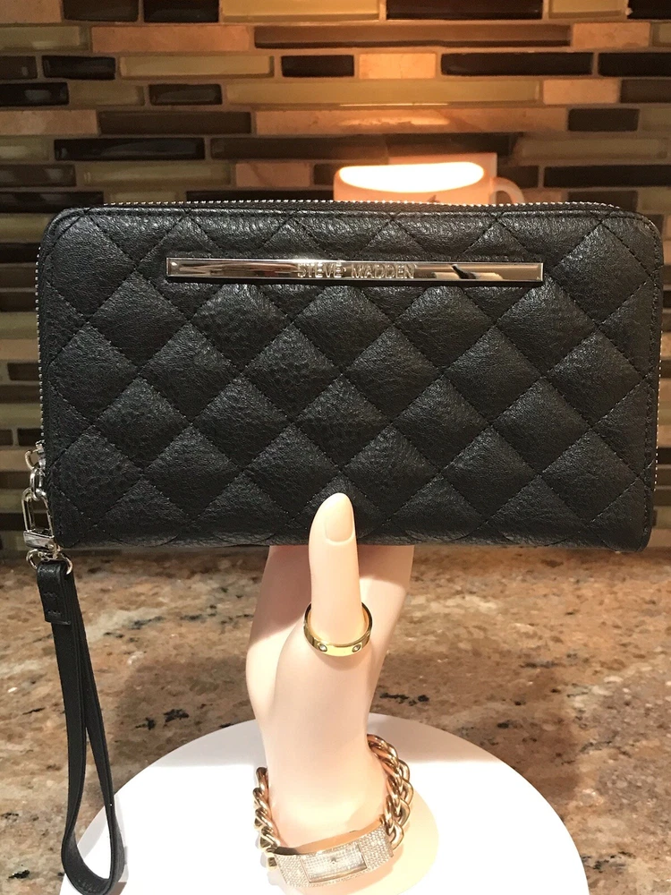 -Condition: Pre-owned ✅ ; in excellent condition -Interior wear (some rubbing/peeling in some areas) -Color: Black 🖤 -Large Organizer Wallet/Wristlet 🔥 -Separated Compartments -Credit Card Slots -ID Window -Zip Around -Perfect for traveling ✈️ 🧳 💯 -Silver Hardware