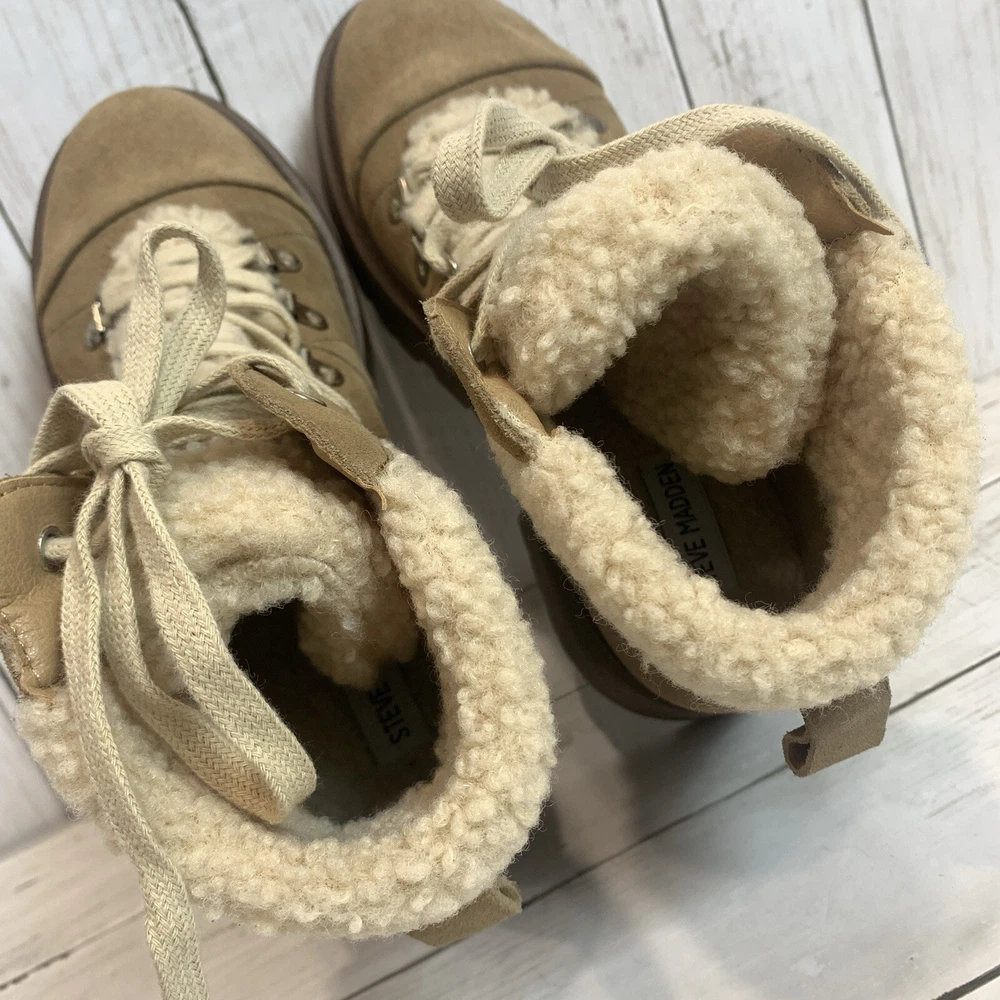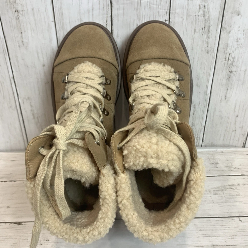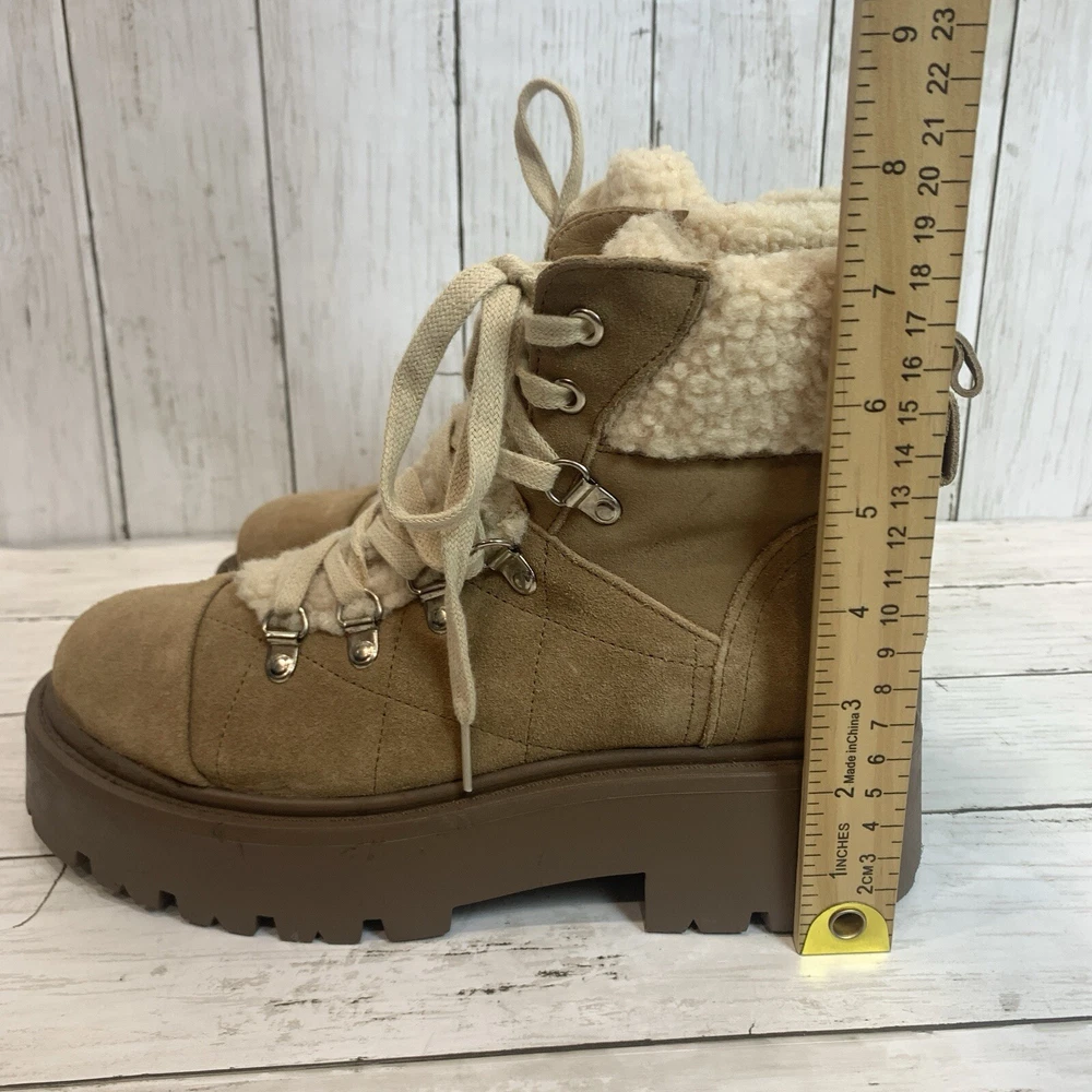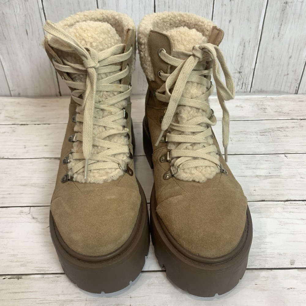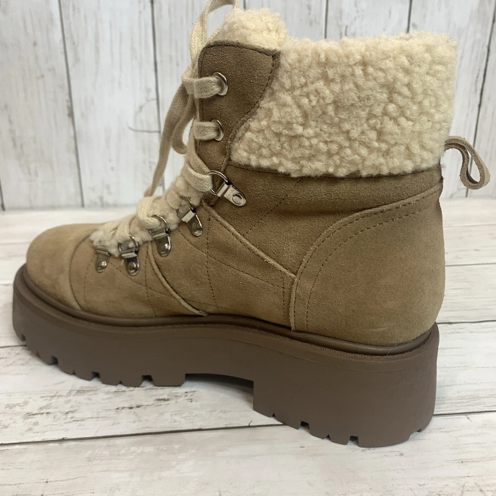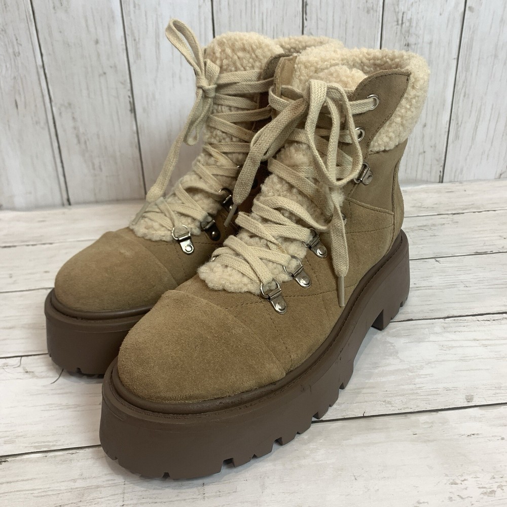 New without box/ tag 8.5 US size D-ring eyelets and plush faux shearling underscore the outdoorsy vibe of this hiking-inspired boot remixed with a chunky lug sole. 2 3/4" heel; 2" platform (size 8.5) 5 1/2" shaft Leather and textile faux-shearling upper/synthetic lining and sole Imported Please let me know if you have any questions Thank you