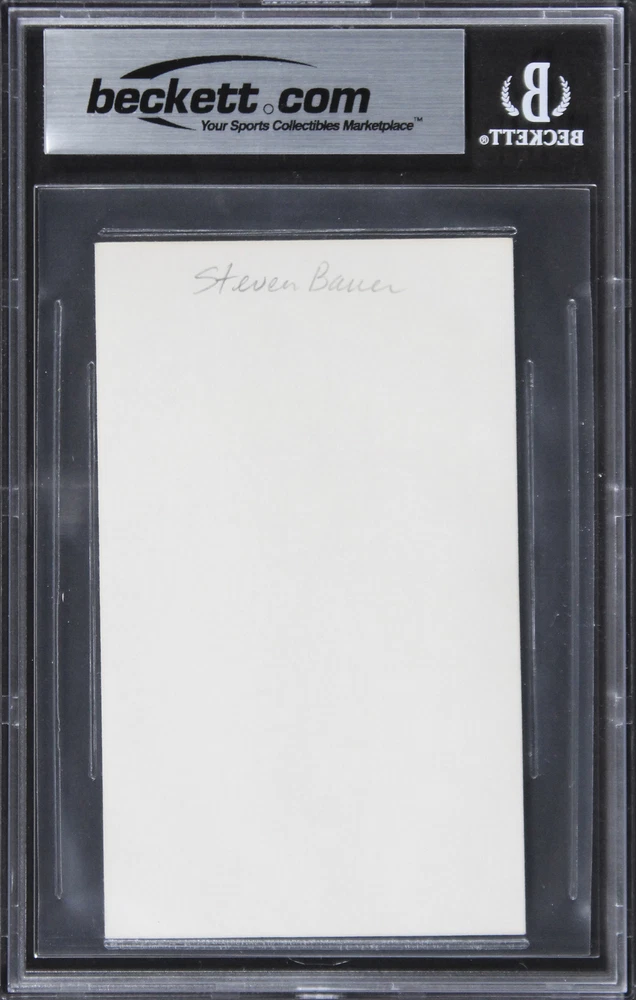Press Pass Collectibles Football Trading Cards Photographs Framed Photographs Footballs Jerseys Framed Jerseys Game Used Helmets Mini Helmets Index Cards Lithographs Magazines Other Baseball Trading Cards Photographs Framed Photographs Baseballs Bats Jerseys Game Used Helmets Index Cards Lithographs Magazines Other Basketball Trading Cards Photographs Framed Photographs Jerseys Framed Jerseys Basketballs Game Used Floors Index Cards Magazines Other Hockey Trading Cards Photographs Jerseys Framed Jerseys Game Used Hockey Sticks Pucks Index Cards Magazines Other Boxing Photographs Framed Photographs Gloves Trunks Other Golf Photographs Balls Flags Index Cards Other Misc Sports MMA Olympic Racing Soccer Tennis Wrestling Other Celebrity Photographs Framed Photographs Books Magazines Posters Other Music Photographs Framed Photographs Performance Used Albums CDs Drum Heads Drum Sticks Guitar Posters Programs Other Historical Photographs Documents Military Space Other Presidential Photographs Baseballs Books Documents Magazines Other All Inventory 49.99 This Autographed 3x5 Index Card has been Personally Signed by Steven Bauer of Scarface. This item is 100% Authentic, it comes slabbed and authenticated by Beckett Authentication Services. The authenticity can be verified on Beckett Authentication Services website. Product Details Signed By: Steven Bauer Additional Info: Scarface Authenticated By: Beckett Details: The PPC Guarantee: Press Pass Collectibles (PPC) offers authentic in-person autographs that include a 100% money-back lifetime guarantee regarding the autograph's authenticity. Our items are sourced from PPC autograph signings or direct from leading suppliers of authentic memorabilia. The companies that authenticate these items include Beckett Authentication Services (BAS), Professional Sports Authenticator (PSA/DNA), James Spence Authentication (JSA), Steiner Sports, Upper Deck, Fanatics, Mounted Memories, and Tri-Star Productions. All autographed items come with a Certificate of Authenticity (COA) from these suppliers that includes a tamper proof hologram affixed to the item. Shipping: Press Pass Collectibles ships all orders via UPS, FedEx, or USPS within 24 business hours. We will combine shipping ! Additional items are typically $1 - $2 each, but cost may vary depending on dimensions and weight. Please contact us for a combined invoice prior to making your paymen t. PPC Exclusives: Press Pass Collectibles has exclusive autograph relationships with over 50 professional athletes and celebrities including Magic Johnson, Chevy Chase, Travis Kelce, DK Metcalf, Justin Jefferson, Randy Moss, Kyler Murray, Adrian Peterson, Baker Mayfield, Ray Lewis, George Kittle, Dak Prescott, Jerome Bettis, Chase Claypool, Deion Sanders, Jack Lambert, Mean Joe Greene, T.J. Watt, J.J. Watt, Tony Dorsett, Devin White, Tony Gonzalez, Emmitt Smith, Michael Irvin, Jason Witten, Jared Allen, Kurt Warner and more! Shop our entire collection