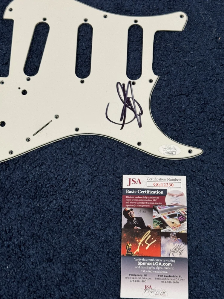 We are pleased to offer this very nice Steven Tyler Signed Stratocaster pick guard. The overall condition is very nice. The autograph has been certified by JSA with sticker and cert card. The guard will be Shipped USPS, and will cost $10.00. Thanks for looking, and please email with any questions.