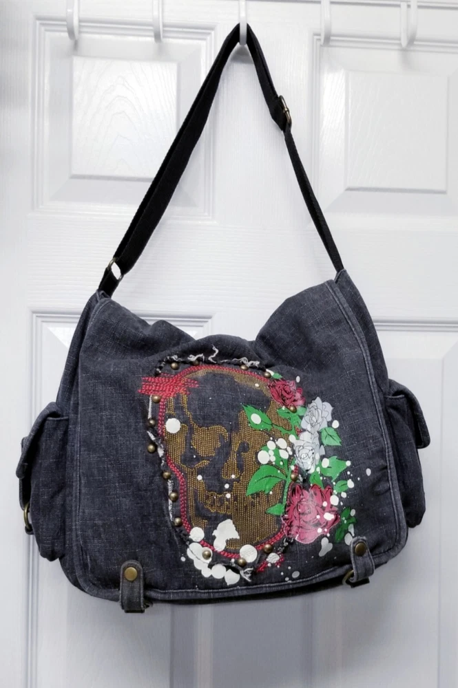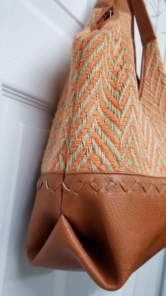 Please note item number when placing order thank you. #1 Steven large orange woven bag width 18"x height 14"x depth 5"x strap drop 11"x strap length 21" good condition. #2 LuLu denim fabric distressed embellished multi pocket shoulder bag adjustable strap width 16"x height 14"x shoulder drop 10"x depth 4"x strap length 20"adj good condition.