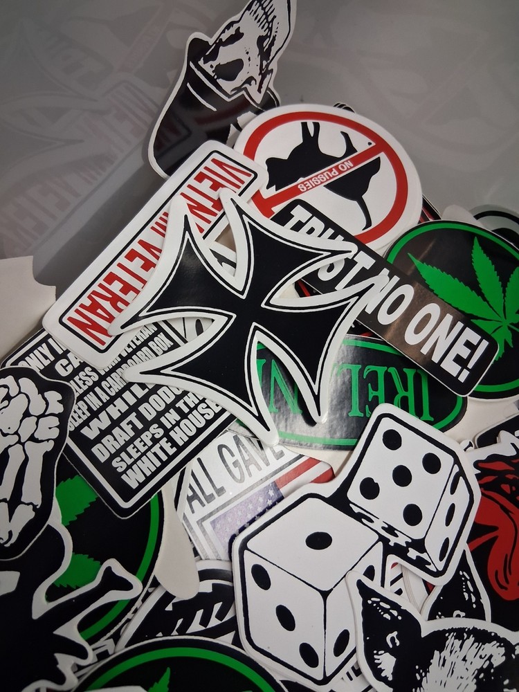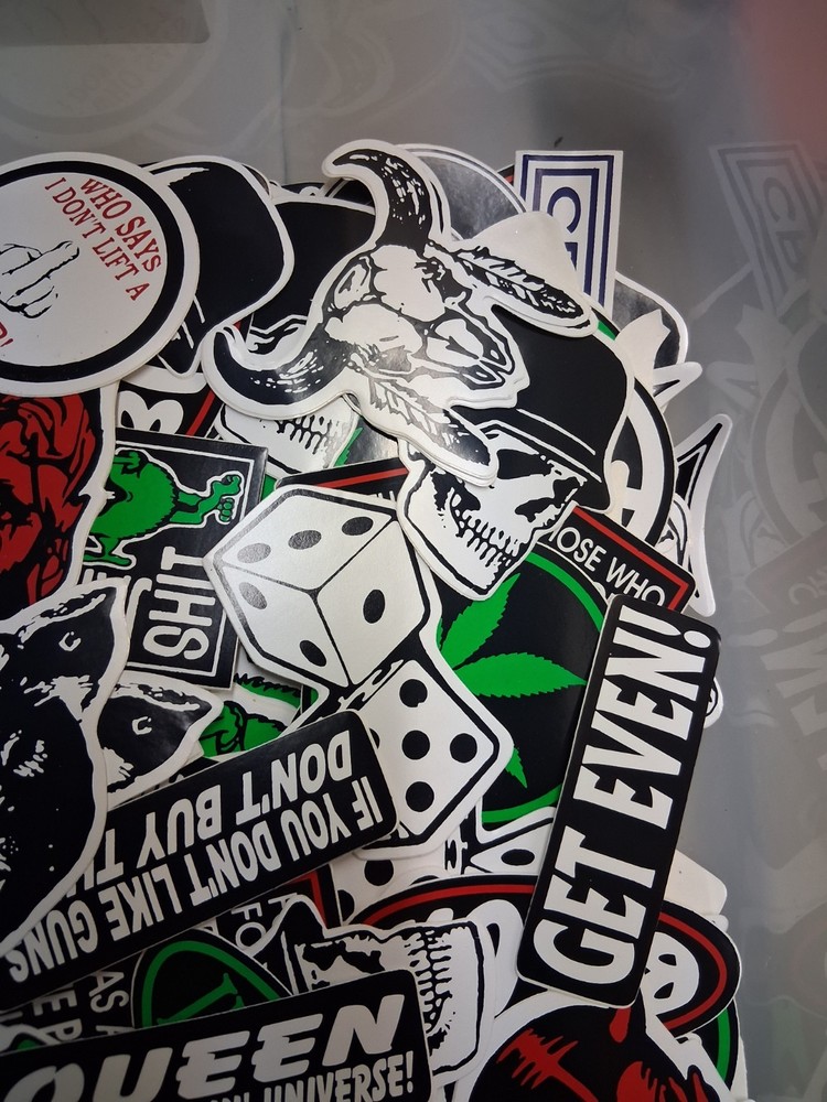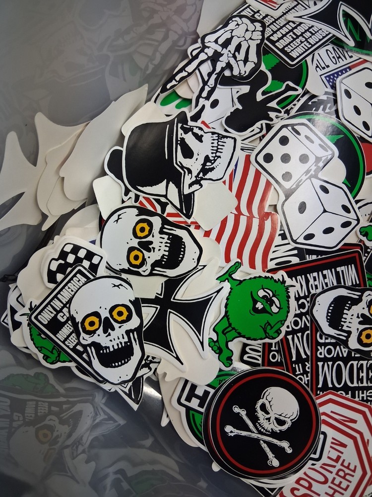 The product is a lot of 100 different vintage stickers and decals, specifically geared towards bikers and skaters. These stickers are hard to find and are perfect for personalizing various items such as skateboards, bikes, and any outdoor sports equipment. With a variety of designs and themes, this random lot of stickers offers endless possibilities for adding a unique touch to your gear. These stickers are waterproof sun proof and will not fade. these are high quality vintage motorcycle helmet stickers. Please Review all photos carefully the ones in the photos are just an example of what you'll receive. Check out my other awesome items available we also offer fast and friendly shipping thank u for your support