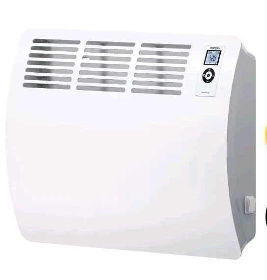 This heater features a space-saving, wall-mounted design that's easy to install. It also features a self-learning program in its timer mode that pre-heats the room, reaching the desired room temperature at the programmed time, not after. With its frost-protection setting, this heater will maintain above-freezing temperatures in a 150 sq. ft. room and has a temperature range between 41 and 86 degrees Fahrenheit. This unit is the perfect addition for retrofit and new construction with its stylish European convection design and its power to heat a space both evenly and silently. It requires a 208/240V electrical connection for operation. Width: 24 5/8" Depth: 4 15/16" Height: 18 1/2" *This product must be hardwired by a professional; it does not plug into a standard wall outlet.*