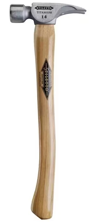 - NOTE: PLEASE READ PRODUCT DESCRIPTION CAREFULLY BEFORE PURCHASING. - NOTE: NO DELIVERY TO FREIGHT FORWARDING COMPANY ADDRESSES AND WAREHOUSE, BUSINESS ADDRESS, THE UPS STORE, UNITED STATES POSTAL SERVICE. - NOTE: WE DO NOT WORK ON SATURDAY AND SUNDAY. YOUR ORDER IS PROCESSED IN A MAXIMUM OF 10 BUSINESS DAYS, EXCLUDING SATURDAYS AND SUNDAYS. - NOTE: ORDERS TAKE A LONG TIME TO PROCESS, IF YOU CAN'T WAIT, YOU CAN SUBMIT A CANCELLATION REQUEST AT ANY TIME WHILE THE ORDER HAS NOT BEEN SHIPPED. - NOTE: DO NOT BUY MULTIPLE PRODUCTS IN THE SAME ORDER. PLEASE BUY EACH PRODUCT AS ONE ORDER. Stiletto 14 Oz. Titanium Smooth Face Hammer with 18 in. Curved Hickory Handle About This Product The Stiletto TI14SC is a 14 Oz. Titanium Smooth Face Hammer with 18 in. Curved Hickory Handle. The Hammer has a straight claw design and Stiletto's signature Magnetic Nail Starter. The TI14SC has the comparable striking force of 24 Oz. Steel hammer and is recommended for residential framing and remodeling. Stiletto Tool Company has been synonymous with high quality hand tools dating back to 1849. With its long history and strong reputation, the brand has evolved into the modern day standard for innovative, lightweight, ergonomic, productive, and professional tools. We set the standard with our line of premium titanium hand tools that span numerous trades such as framing, remodeling, finish work, siding, demolition, concrete, and drywall. Titanium is 45% lighter weight while providing the same striking force and strength as steel. Titanium tools also produce 10 times less recoil shock which helps reduce carpal tunnel syndrome. The combination of these features means less down time, more productivity, and most importantly less pain while working. Highlights 14 Oz. solid smooth face titanium head 18 in. Curved axe-style hickory handle 1.5 in. Diameter face, 17 1/2 in. overall length, 23.5 Oz. overall weight Titanium delivers ten times greater dampening of recoil than steel Lightweight and balanced titanium head reduces arm fatigue Straight claw design Stiletto's signature magnetic nail starter Dimensions Assembled Depth (in.): 18 in Assembled Height (in.): 1.5 in Assembled Width (in.): 6.25 in Handle Length (in.): 18 in Weight of Head (oz.): 14 Details Claw Type: Straight Color Family: Silver Face Type: Smooth Features: Comfort Grip Hammer Type: Straight Claw Hand Tool Type: Hammer Handle Material: Wood Head Material: Titanium Head Replaceable Head: Yes Tools Product Type: Hand Tool