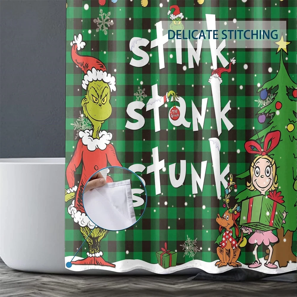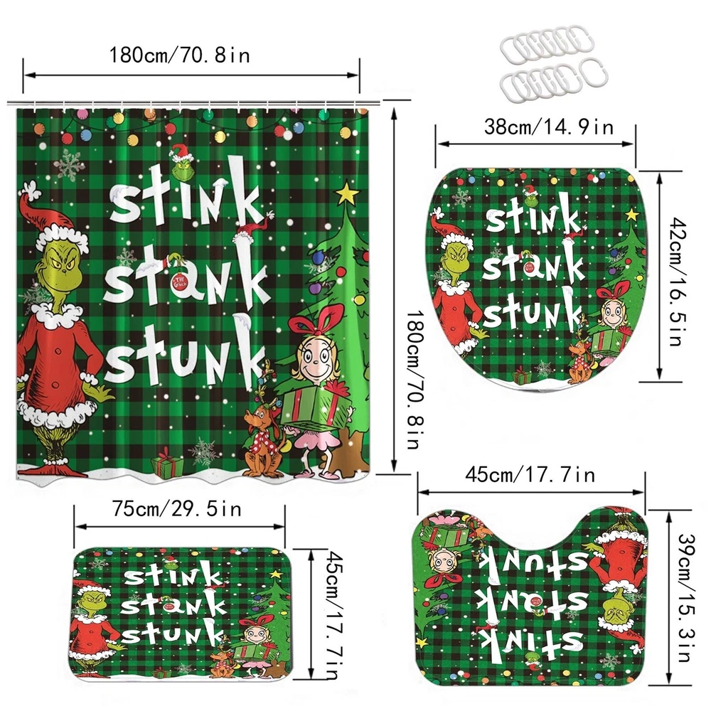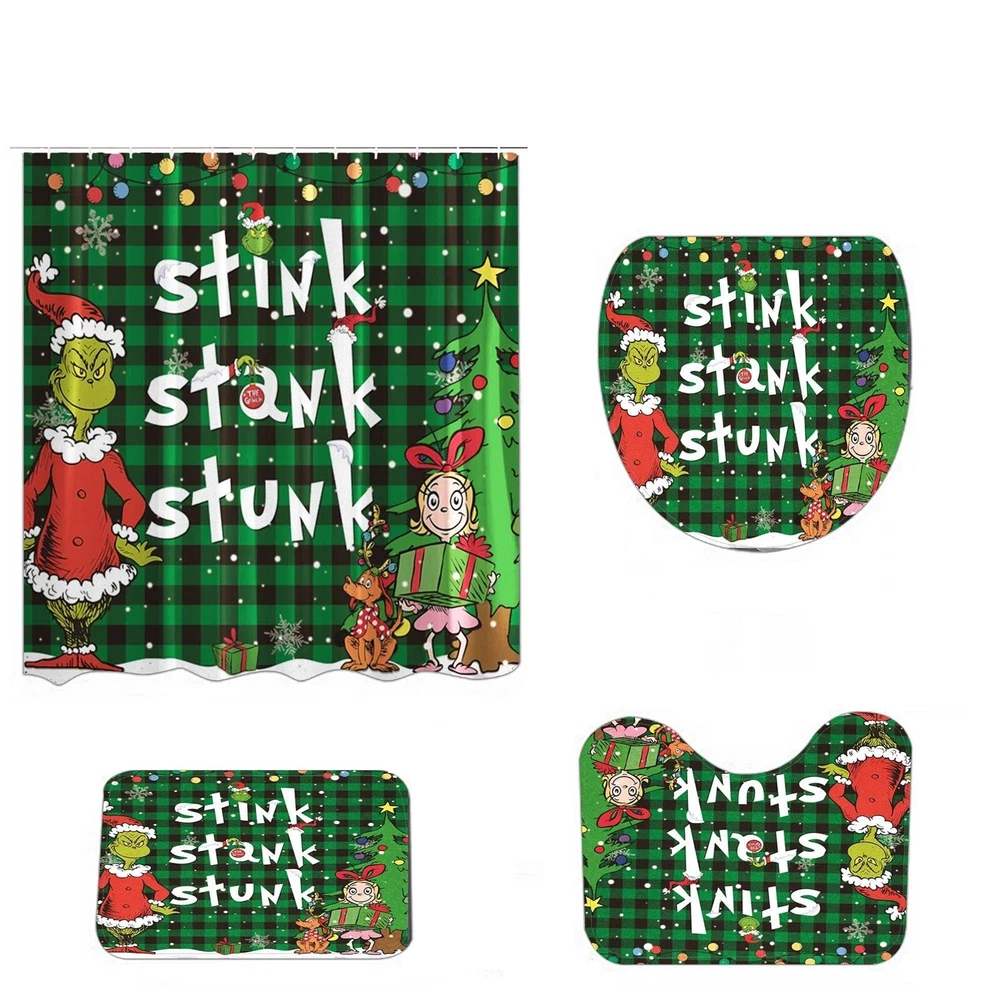 Stink Stank Stunk Grinch Merry Christmas Shower Curtain or Bathroom 4pcs/Set.✈️