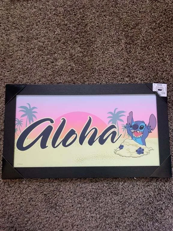 Bring the magic of Disney to your home with this Stitch themed wall art set. Featuring two pieces, one with 'Aloha' and Stitch on the beach, and another with 'Ohana' and the heartfelt message 'nobody gets left behind or forgotten.' Perfect for adding a touch of whimsy and warmth to any room.