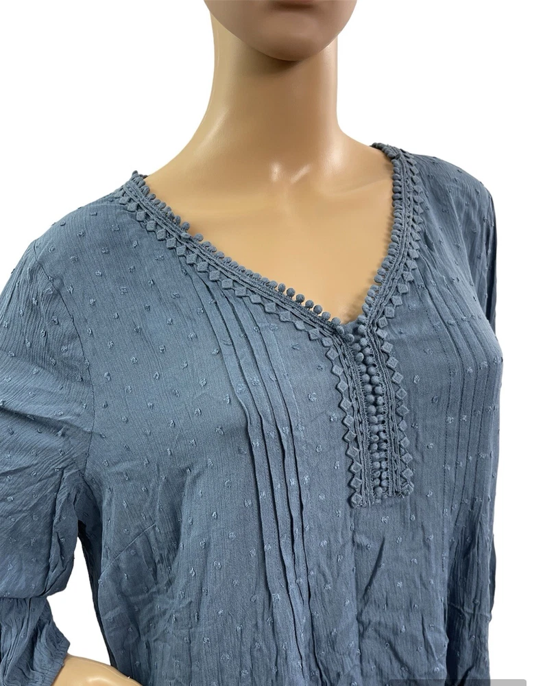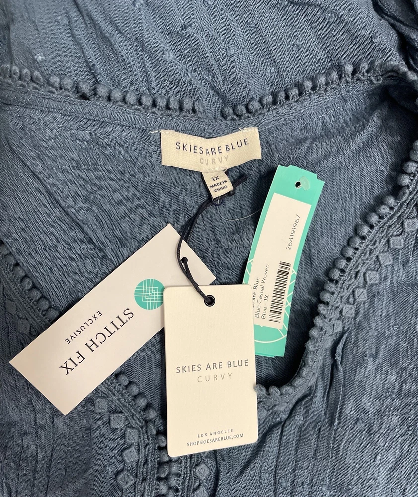 Stitch Fix Sky Are Blue Curvy Women’s Size 1X Long Sleeve V Neck Blue Blouse Armpit to armpit 25” Total length 26” Measurements taken laying down New with tag Smoke free pet free home