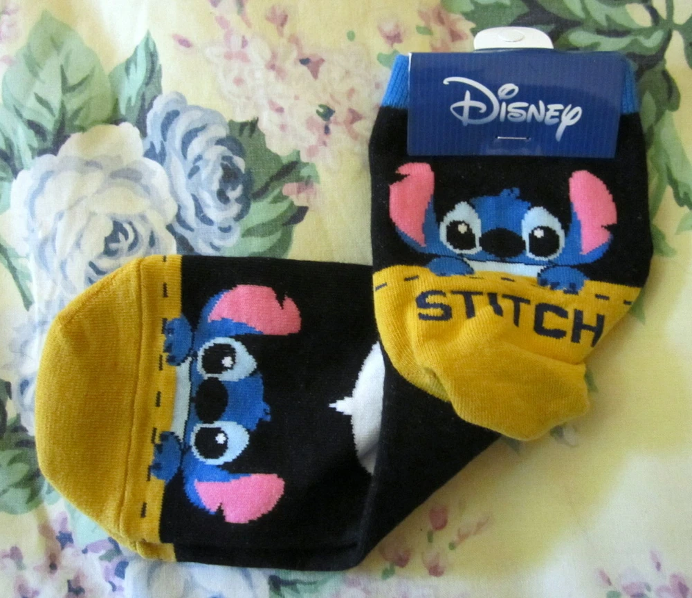 Material: Cotton Spandex Blend Pattern: Stitch Occasion: Activewear, Casual, Everyday, Travel, Workwear Theme: Disney, Lilo & Stitch, Stitch, Stitch Socks, Lilo & Stitch Socks Department: Women Size: M Character: Stitch Character Family: Lilo & Stitch Brand: Disney Style: Crew Color: Black Sock Length: 9.5 Inch Type: Socks Features: Lilo & Stitch Socks, Stitch Socks