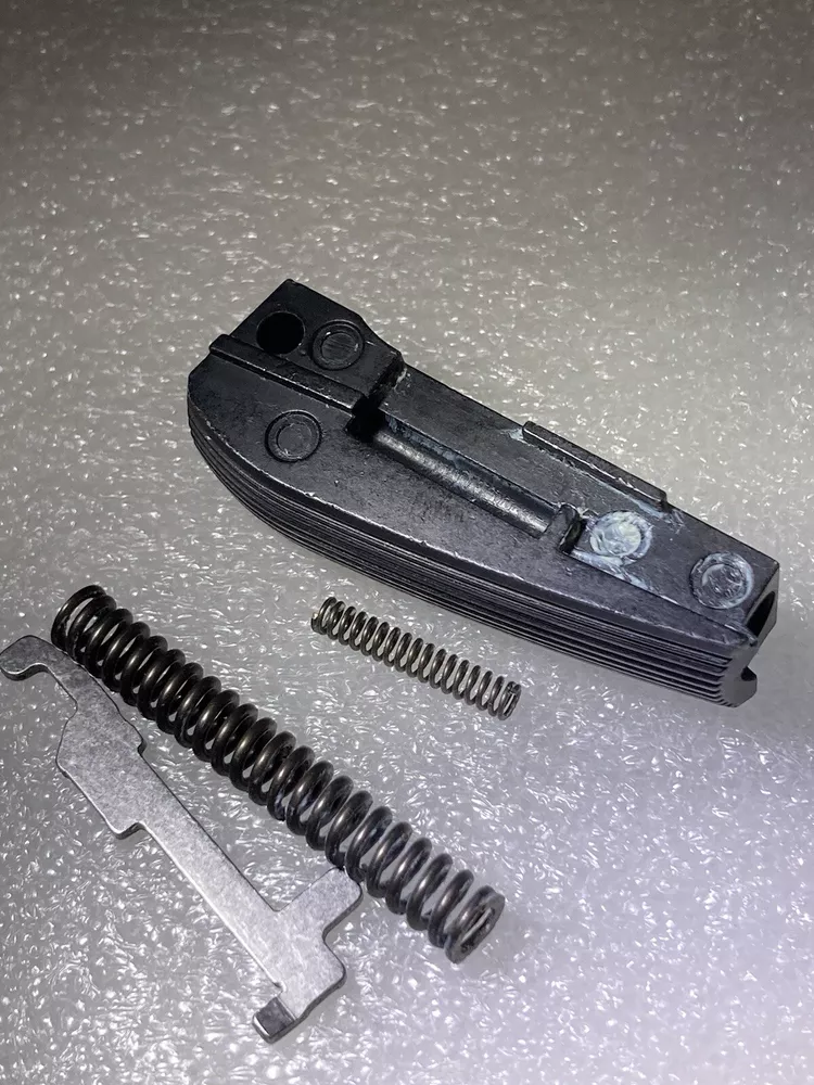 Stock Mainspring Housing GSG 1911-22lr, complete with springs X 2 and metal part exclusive for GSG 1911/.22 pistols. Good condition, ready to mount on proprietary German Sport Guns 1911-.22lr pistols. *** Check My Other Auctions For Additional GSG 1911/.22 Parts *** Please view all of the images as they are a part of the description. 📸 Shipping in the USA is $6.00 for Ground Advantage Mail including Tracking and Insurance. 📮