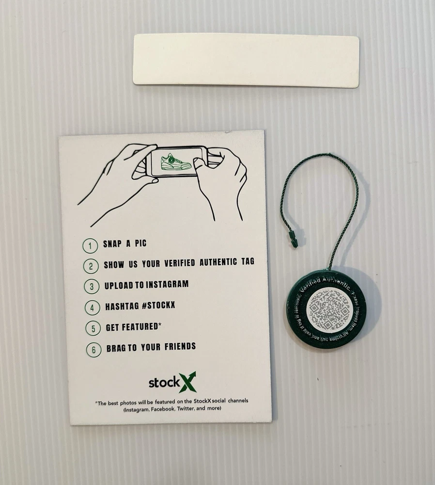 This Stock X Tag is a must-have for any sneaker enthusiast! With its bright green color and unisex design, it's perfect for anyone who wants to add a stylish touch to their athletic wear. The tag is made for athletic shoes, so you can be sure that you're getting a high-quality product that will last. The tag is perfect for those who want to add a touch of personality to their sneakers. It's easy to use and can be customized to fit your needs. Plus, it's made for athletic shoes, so you can be sure that you're getting a durable and reliable product. - Brand New - NEW Stock X tags - Scannable QR Code - Comes as a set
