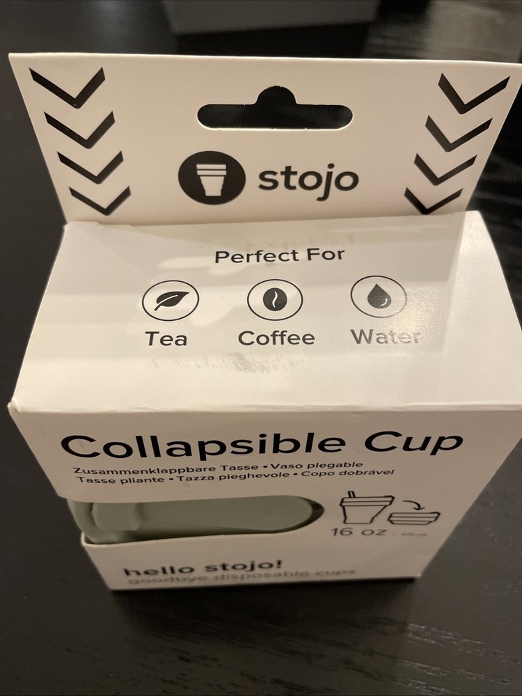 NEW Stojo Collapsible Travel Cup With Straw 16 oz Sage hello stojo Introducing the NEW Stojo Collapsible Travel Cup, perfect for all occasions. This 16 oz cup comes in a stylish gray color and features a silicone and BPA-Free Plastic construction. The cup includes a straw and lid, making it easy to drink on the go. Designed with convenience in mind, this cup is easy to clean and store. Its collapsible design makes it perfect for travel, camping, or even everyday use. The cup is made by Stojo, a brand known for their high-quality travel cups. Get your hands on this must-have travel accessory today!