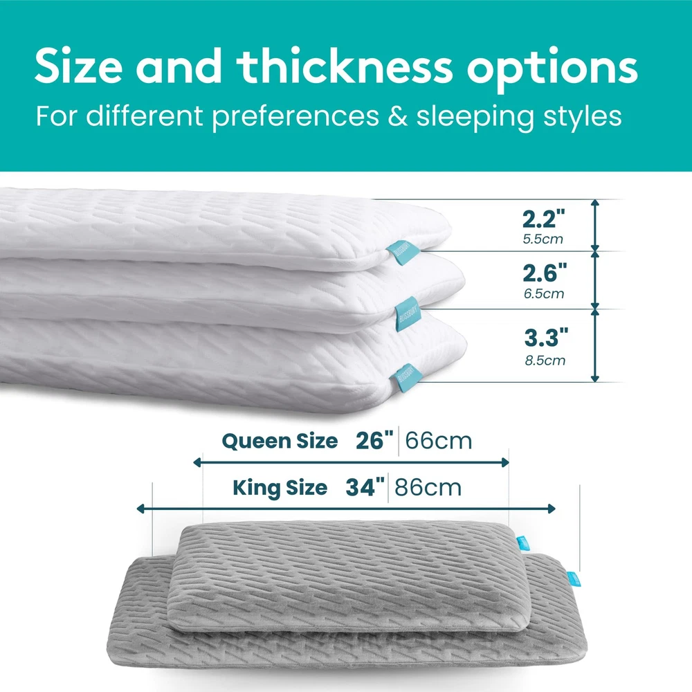 Experience unmatched comfort with the Thin Stomach Sleeping Pillow, expertly designed for stomach sleepers seeking a low profile, flat pillow that is thin, soft, and firm—ideal for alleviating neck pain and enhancing sleep quality. This specialized pillow is perfect for those who need targeted support without sacrificing comfort. Crafted from premium 50D gel-infused memory foam, our pillow provides a stable, cool sleeping environment. The cooling gel ultra slim pillow regulates temperature and ventilation holes improve airflow, ensuring you remain comfortable throughout the night. This innovative design helps maintain a cool head and neck, crucial for preventing overheating and facilitating uninterrupted sleep. The pillow is encased in a luxurious double-weave pillowcase in neutral shades of white and gray, blending seamlessly into any bedroom decor. The hypoallergenic ice yarn fabric is soft and gentle on your skin, further enhancing the cooling effect by wicking away moisture, ensuring optimal sleep conditions. Our ultra thin bed pillows for sleeping are a game changer for travelers. It comes with a carry bag, allowing you to bring the comfort of your preferred pillow with you, whether you’re staying in a hotel or enjoying a camping trip. This feature ensures you can enjoy the familiar comfort that supports a good night’s sleep for those wanting a stomach sleeper pillow for adults. ’s commitment to safety and quality is reflected in the use of CertiPUR-US certified memory foam and an OEKO-TEX certified pillowcase, ensuring they are free from harmful chemicals and safe for your family. We enhance sleep quality while protecting your health. Choose for a pillow that aligns with your sleep needs and environmental values. Our dedicated 24/7 customer service is ready to assist, ensuring that each customer finds their perfect sleep solution. Embrace the thin pillow for stomach sleeper tonight and wake up refreshed for your day. SUPPORT FOR BACK AND NECK: The Stomach Sleeping Pillow is designed for stomach, back & belly sleepers. We use a Premium 50D Memory foam helping reduce strain on your back and neck resulting in a comfortable pillow for side and stomach sleepers. COMFORTABLE AND RESTFUL SLEEP: Sleep safe & sound with ! Our slim pillow is made out of premium CertiPUR-US memory foam, which is free from dangerous chemicals and harmful flame retardants. Our range offer perfect flat pillows for sleeping thin. SOFT, COOLING FOAM: Our memory foam is gel-infused and uses ventilation holes. It helps keep you cool and comfortable. Our flat pillow also stabilizes your head gently, which can help with snoring. These are pillows for stomach sleepers and belly sleeper. SOFT COMFY PILLOWCASE: It comes with a double weave pillowcase that “wicks away” moisture. Available in white, gray ice yarn to match any set of bed sheets in your home. Sizes designed for ultra thin pillow & thin memory foam pillow & ultra flat pillow. CHOOSE FOR SLEEP: Crafted in Australia, our low profile pillows are tailored for stomach sleepers, ensuring unmatched comfort. We are committed to quality and offer 24/7 customer service to enhance your sleeping experience. Trust in ’S dedication to excellent rest. CERTIFIED SAFETY MEETS PORTABILITY: thin bed pillows offer certified safety with CertiPUR-US memory foam and OEKO-TEX certified pillowcase’s ensuring they are free from harmful chemicals. Plus, enjoy on-the-go convenience with a special cover and carry bag, perfect for hotel stays or travel adventures!